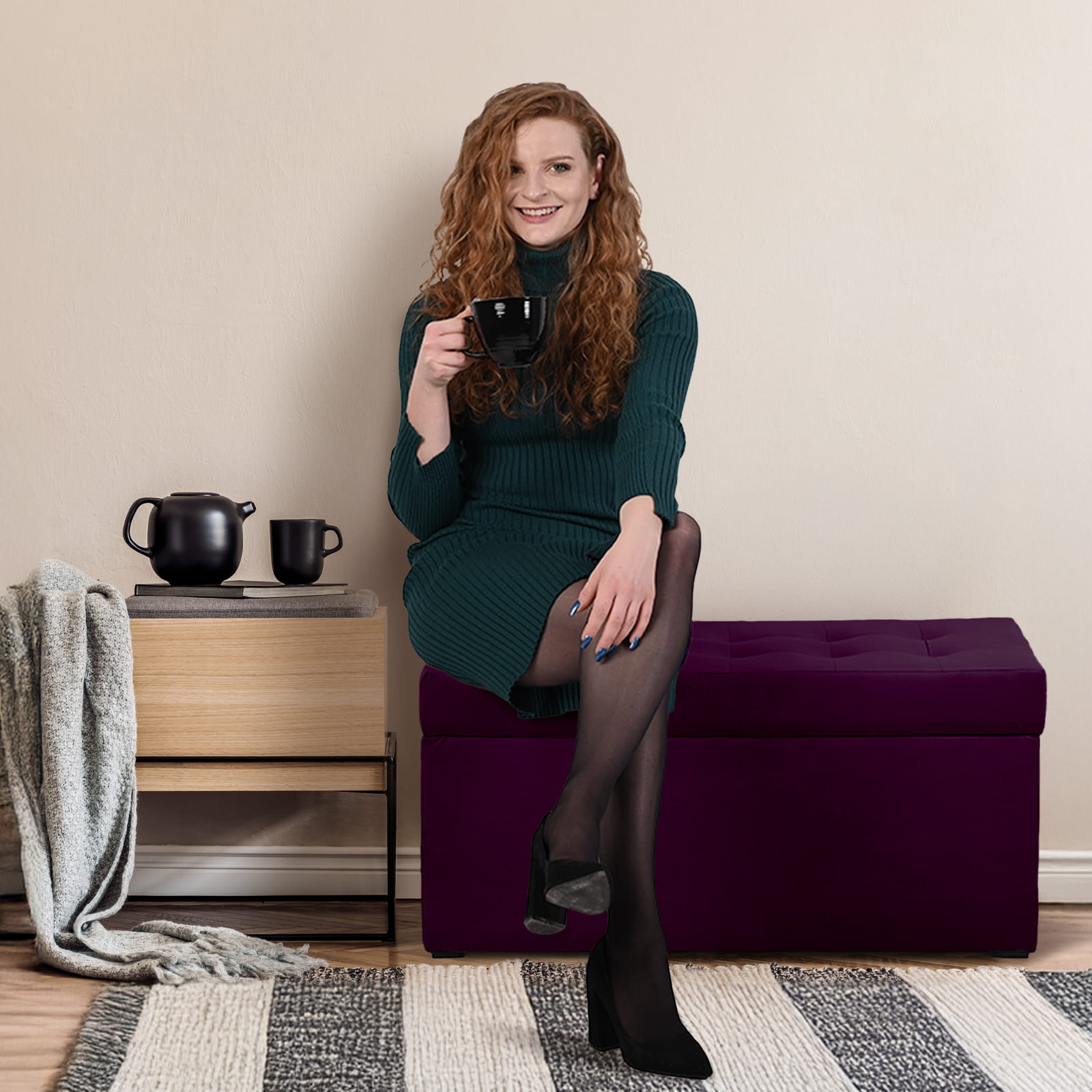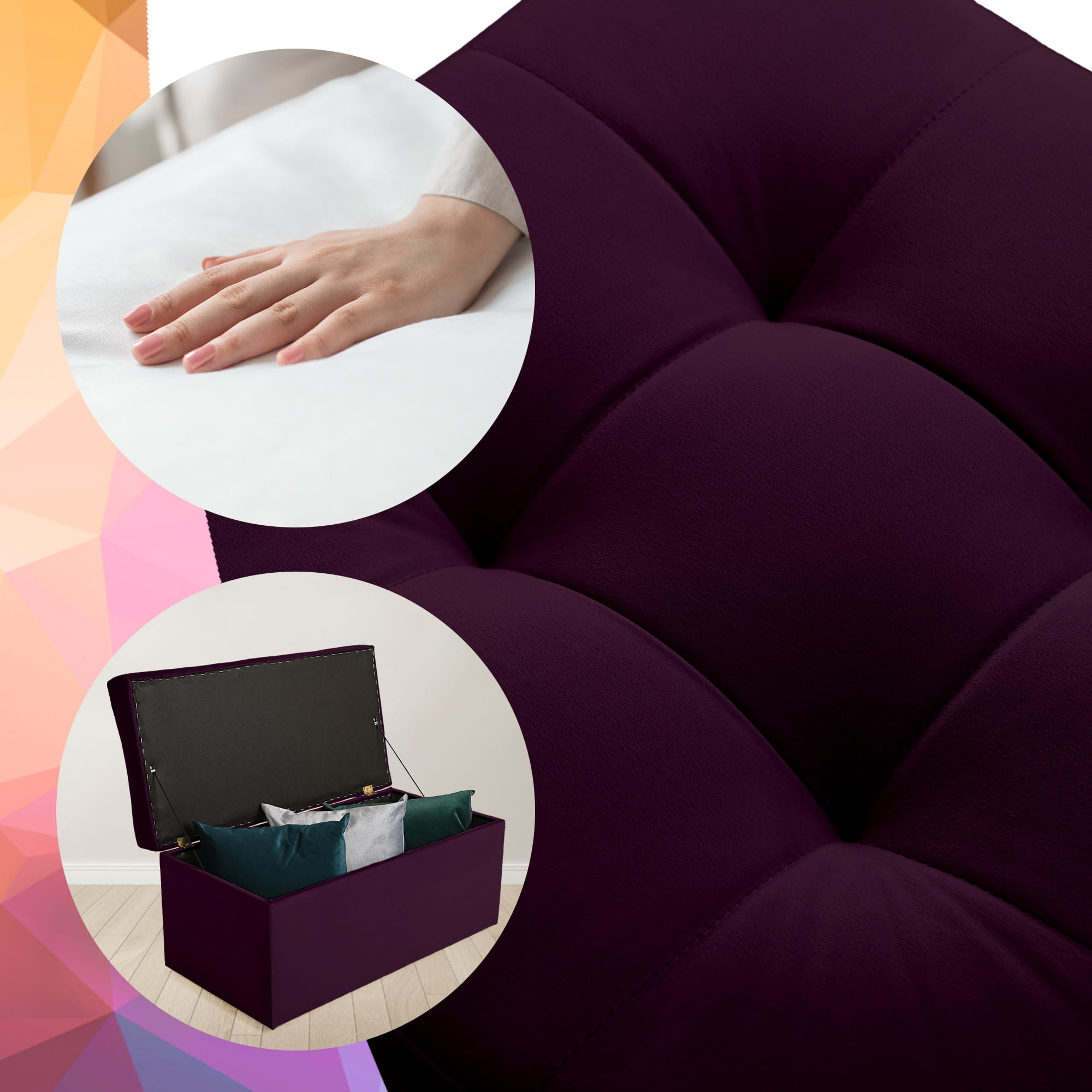 Nowoczesna otwierana pufa 45x90 w kolorze ciemnofioletowym