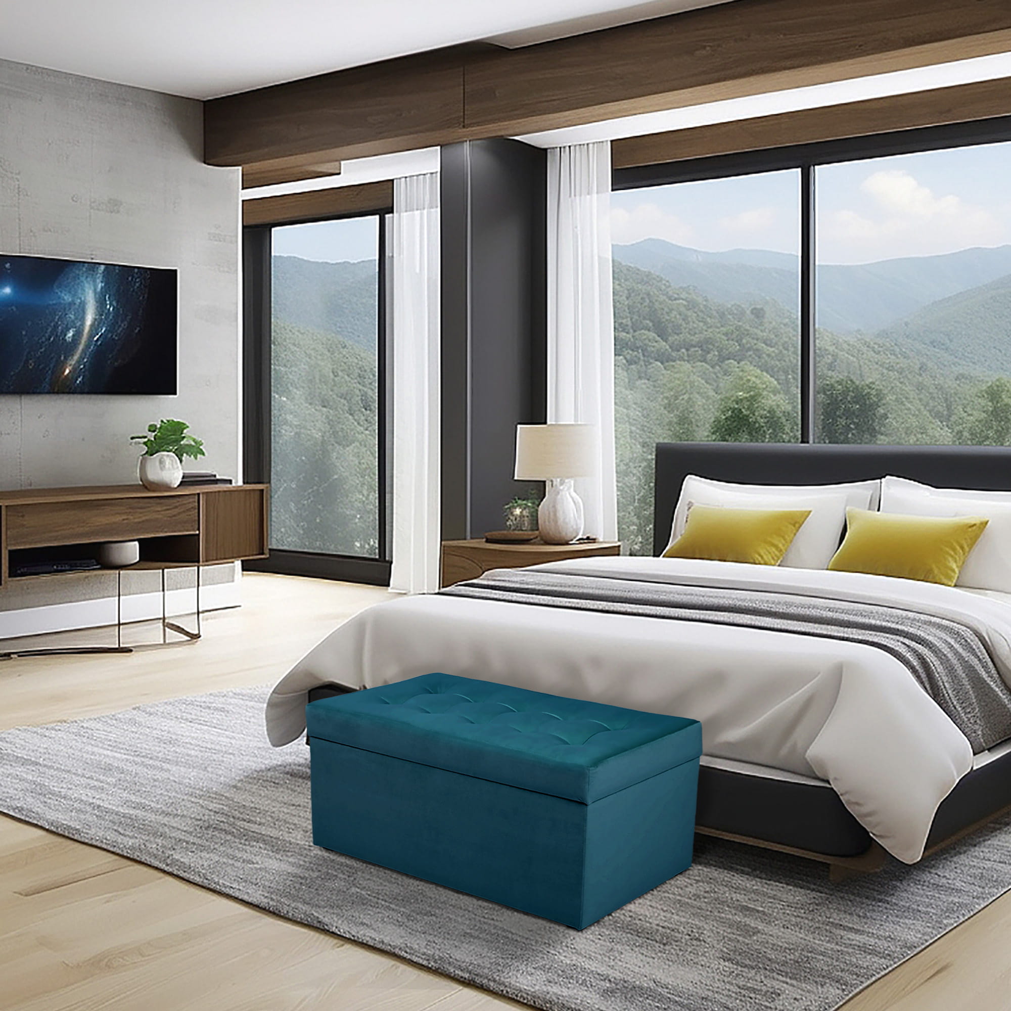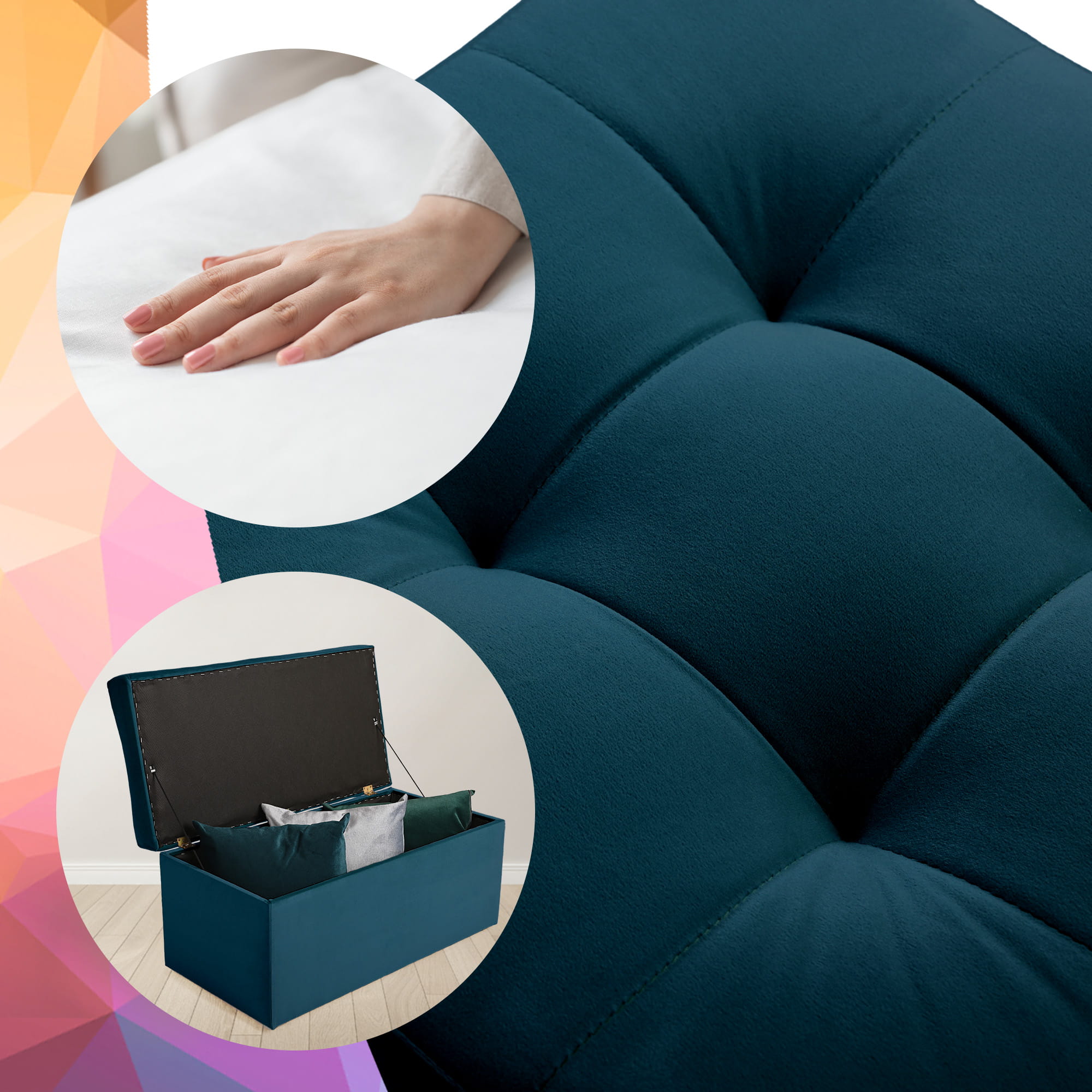 Nowoczesna otwierana pufa 45x90 w kolorze cyjanowym