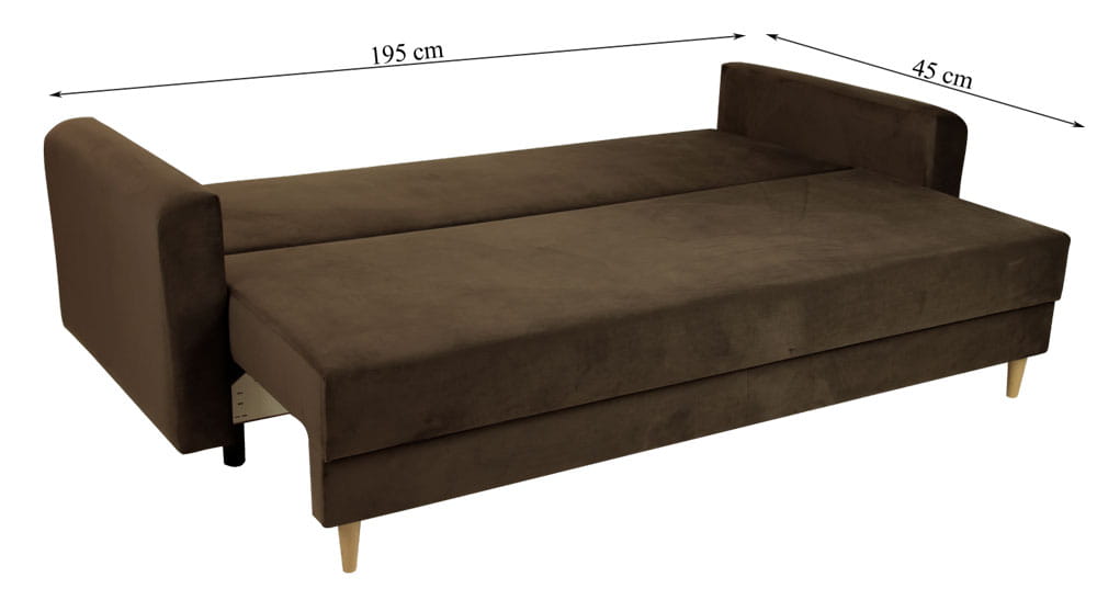 Sofa została zaprojektowana z myślą o najbardziej wymagających użytkownikach. Jest wykonana z dużą precyzją co zapewnia estetyczny, stylowy wygląd. Mebel został wyposażony w sprężyny bonelowe oraz piankę dzięki czemu można cieszyć się komfortowym miejscem do wypoczynku. Kanapa z funkcją spania będzie ozdobą każdego wnętrza.
