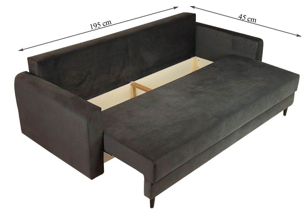 Sofa została zaprojektowana z myślą o najbardziej wymagających użytkownikach. Jest wykonana z dużą precyzją co zapewnia estetyczny, stylowy wygląd. Mebel został wyposażony w sprężyny bonelowe oraz piankę dzięki czemu można cieszyć się komfortowym miejscem do wypoczynku. Kanapa z funkcją spania będzie ozdobą każdego wnętrza.