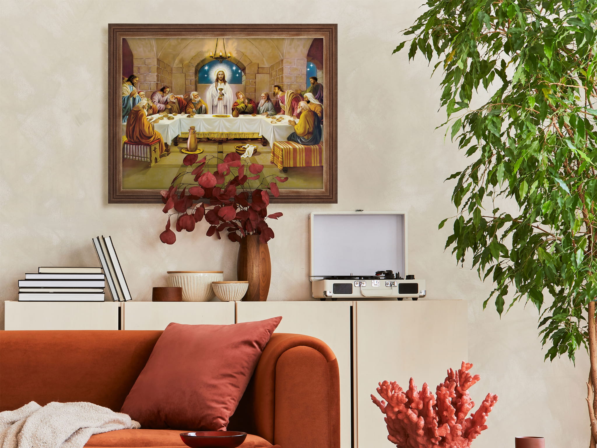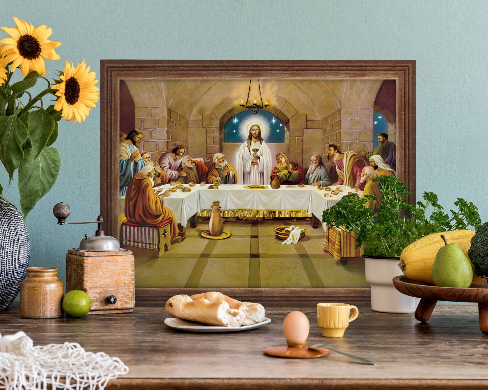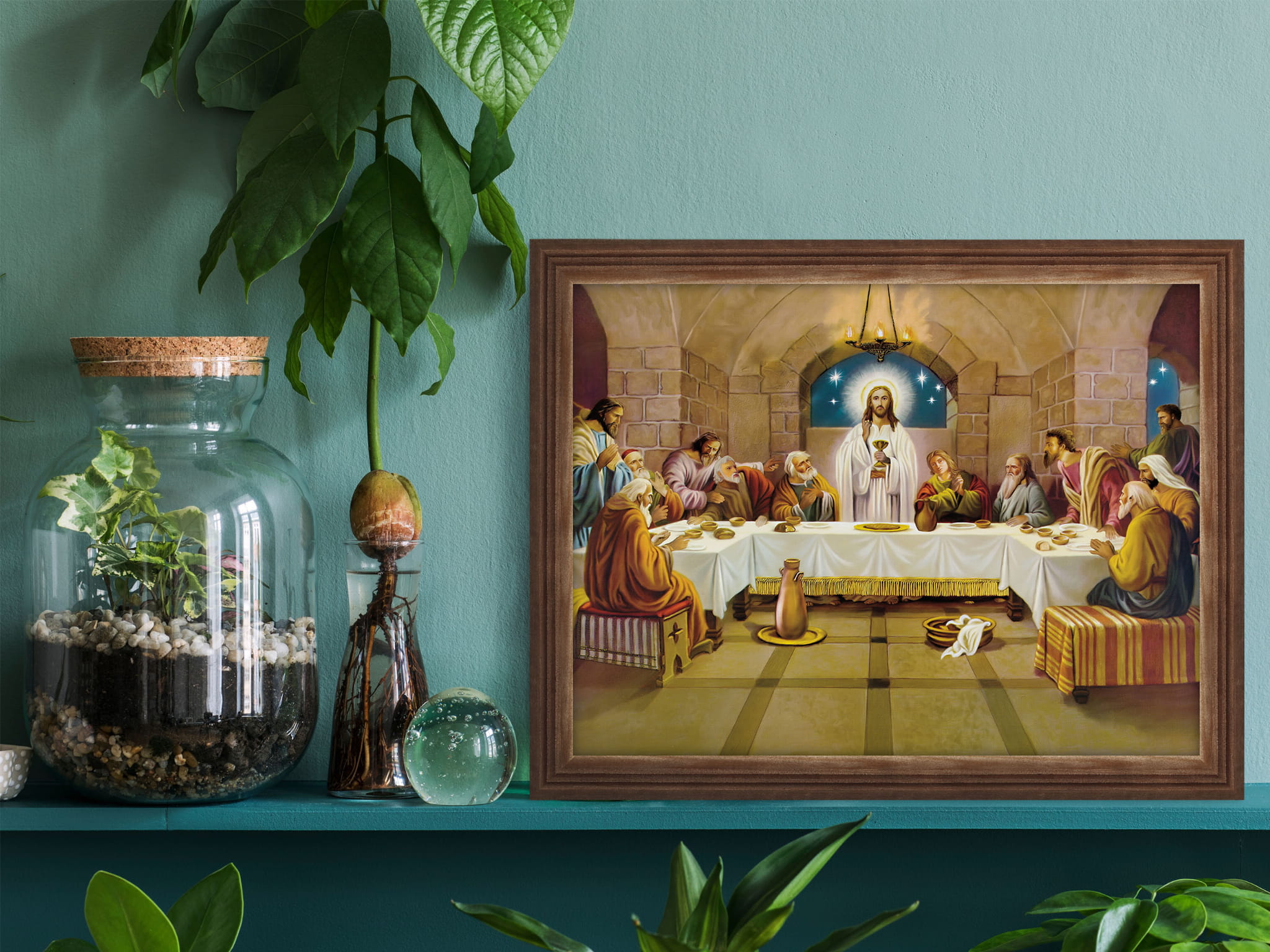 Obraz w ramie o tematyce religijnej w rozmiarze 30x40cm - Ostatnia wieczerza, podkowa