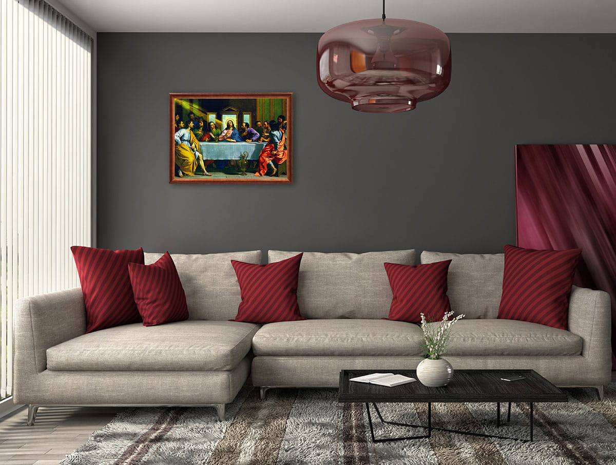 Obraz w ramie o tematyce religijnej w rozmiarze 50x70cm - Ostatnia wieczerza fioletowa