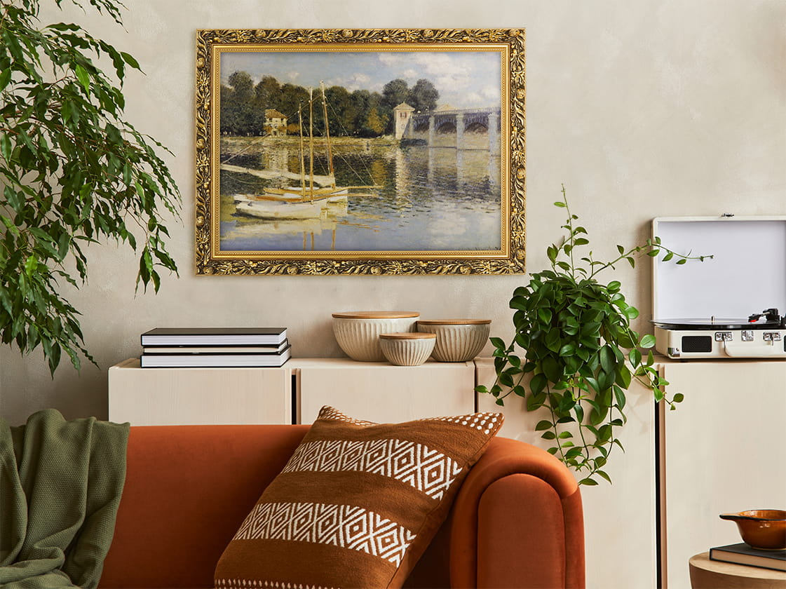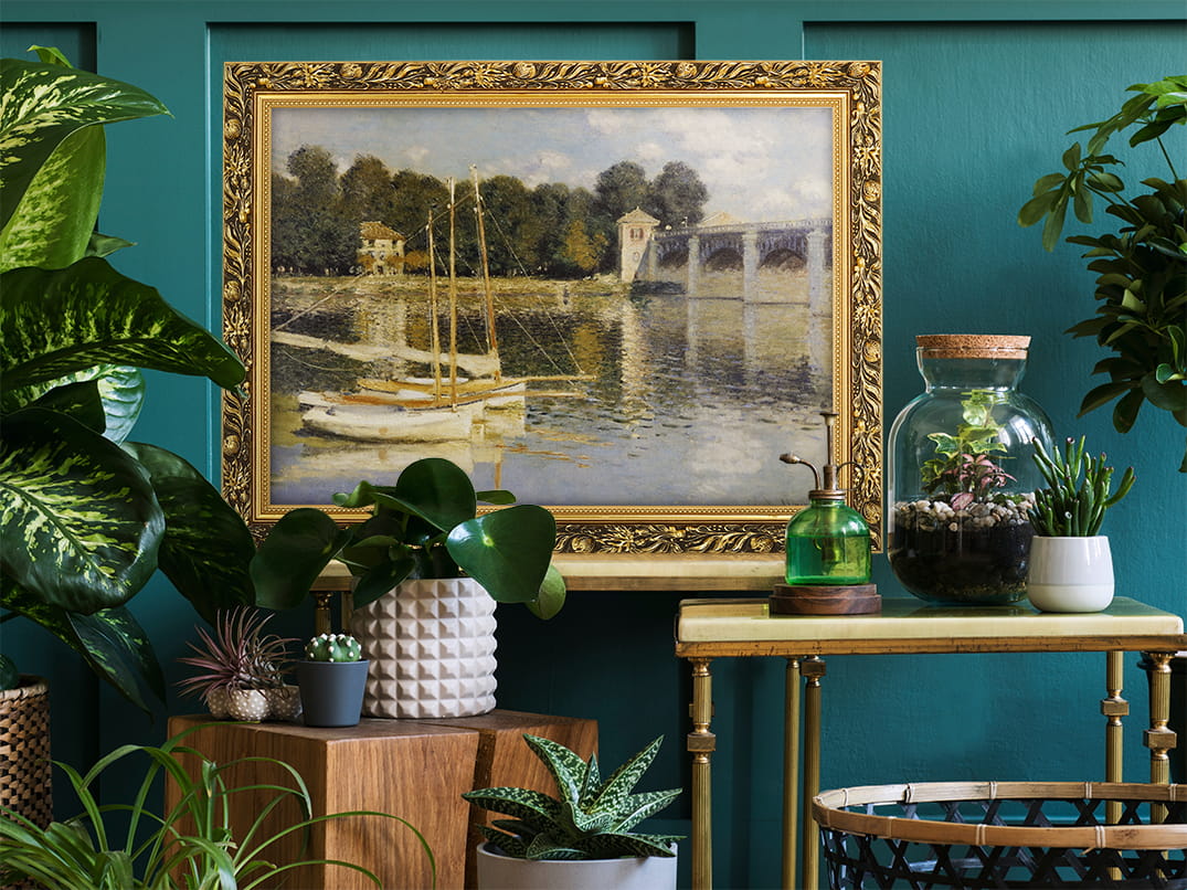 Reprodukcja obrazu w złotej ramie Makówka w rozmiarze 50x70 cm - Most w Argenteuil, Claude Monet