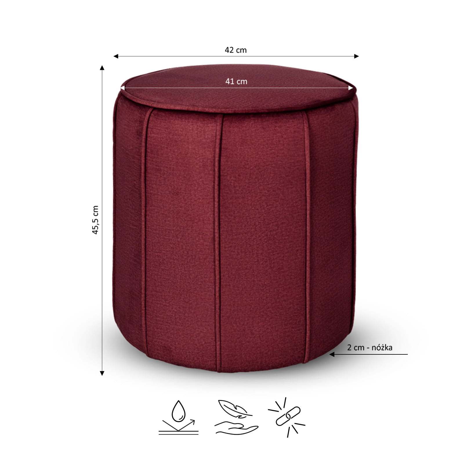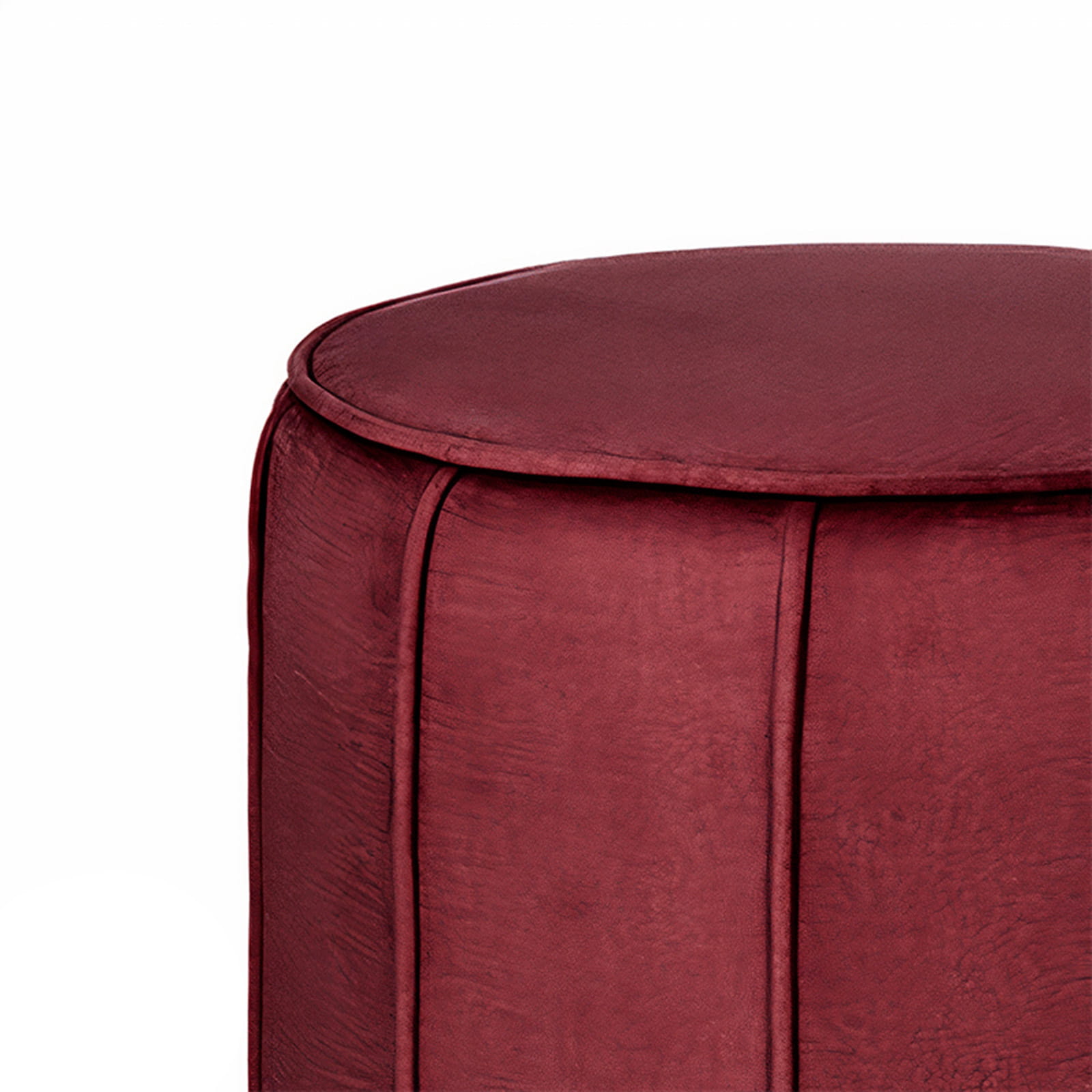 Okrągła pufa z przeszyciami LIVIA w kolorze bordowym – siedzisko z tkaniny welurowej