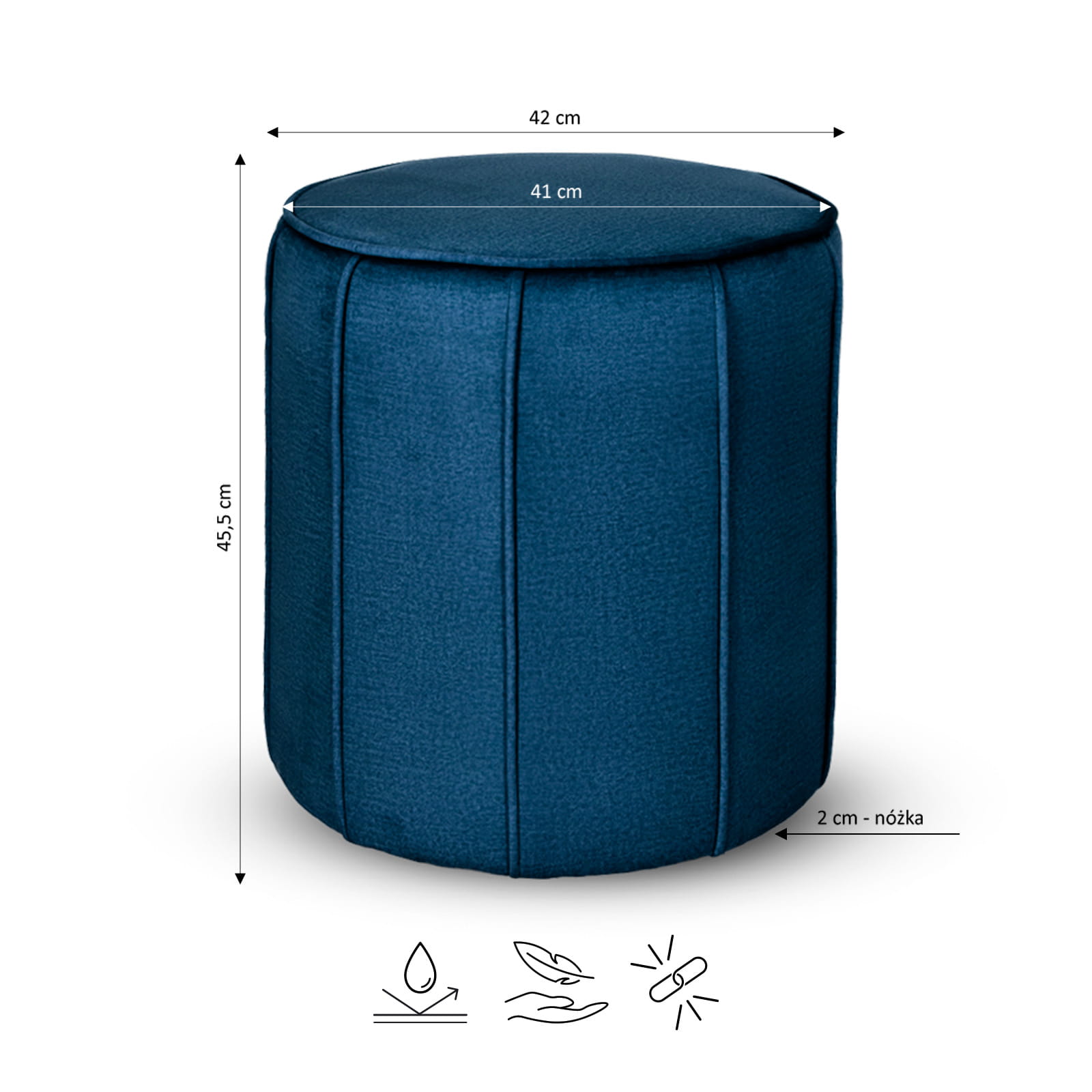 Okrągła pufa z przeszyciami LIVIA w kolorze granatowym – siedzisko z tkaniny welurowej