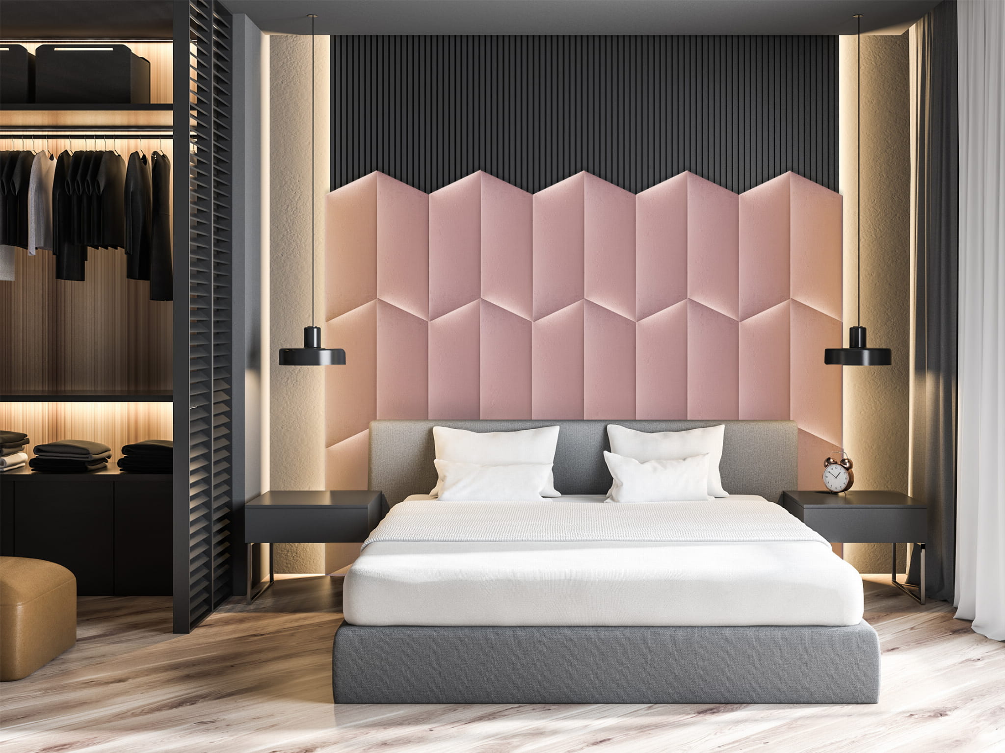 Panel ścienny 15x30 cm tapicerowany w kształcie rombu lewy – Wezgłowie w kolorze pudrowego różu z tkaniny welurowej