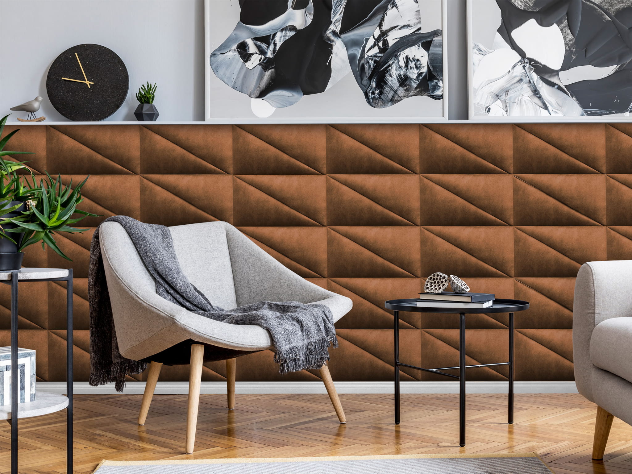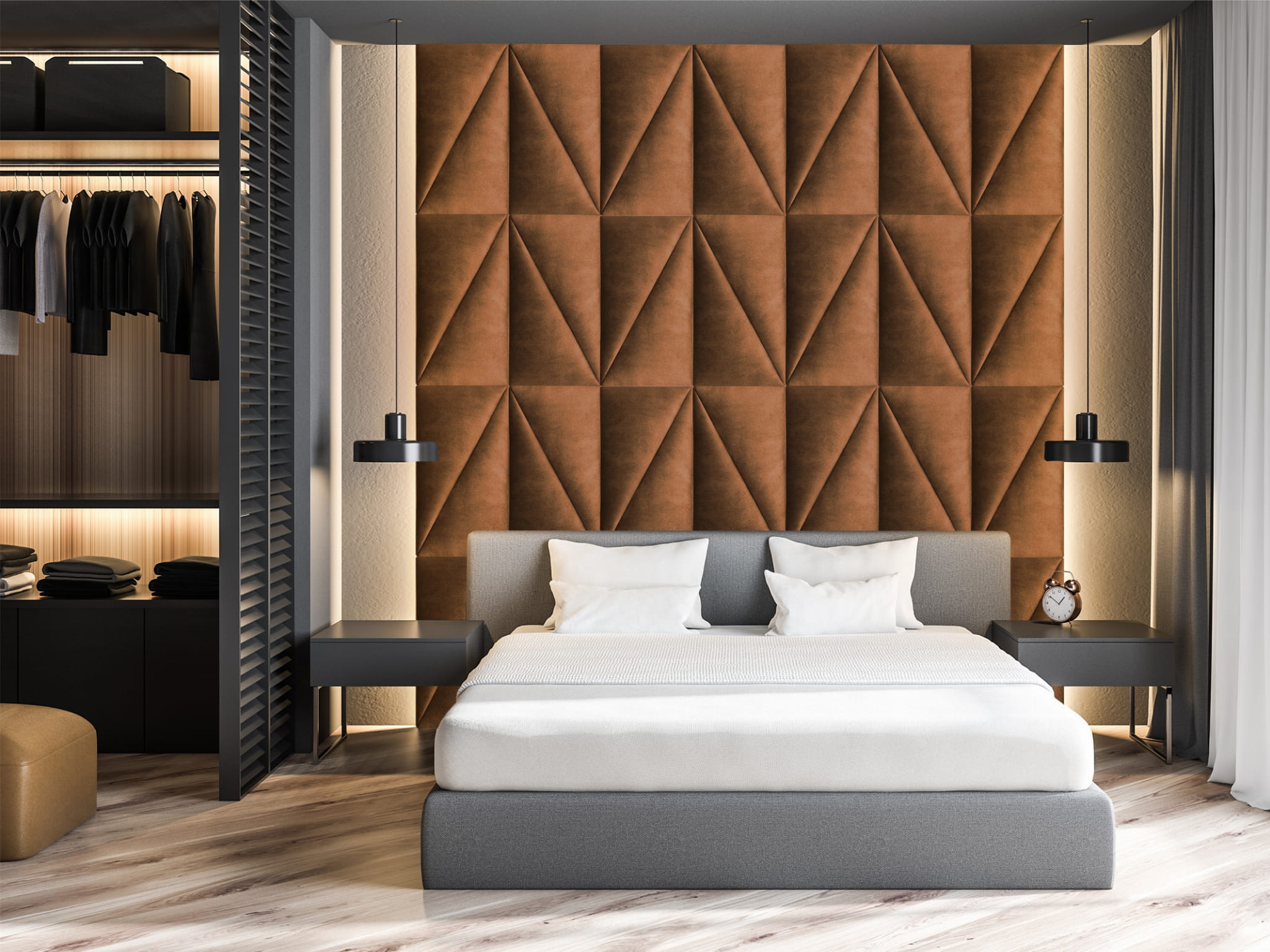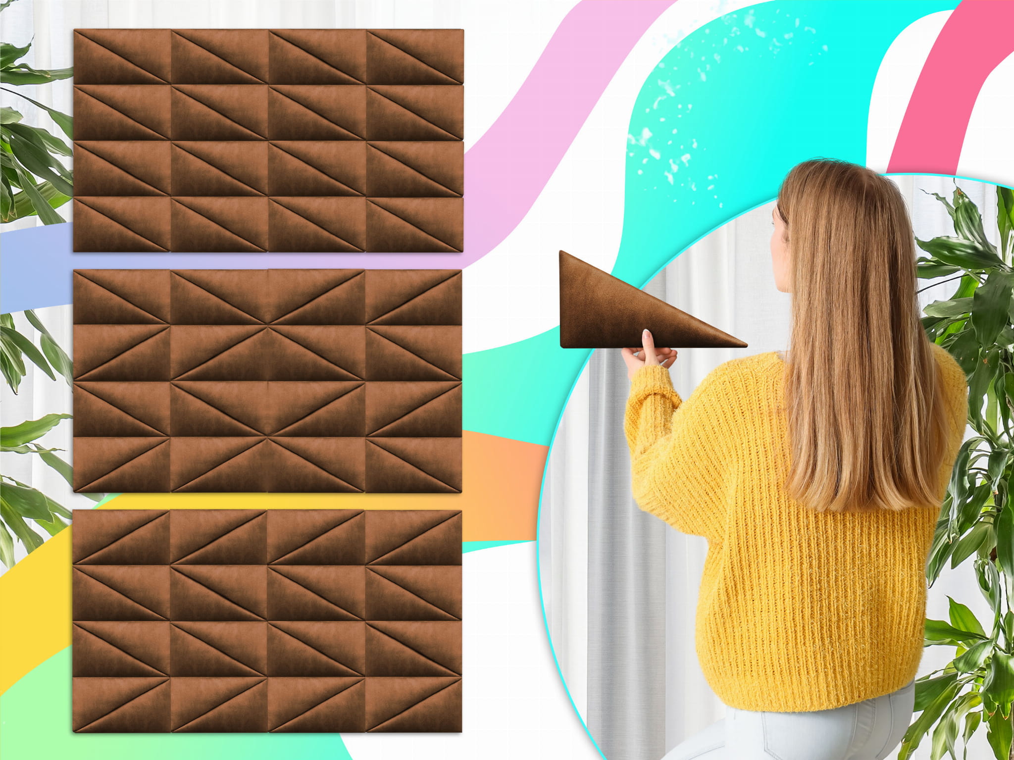 Z naszymi tapicerowanymi panelami ściennymi w kształcie trójkąta stworzysz swoją własną strefę komfortu i stylu.