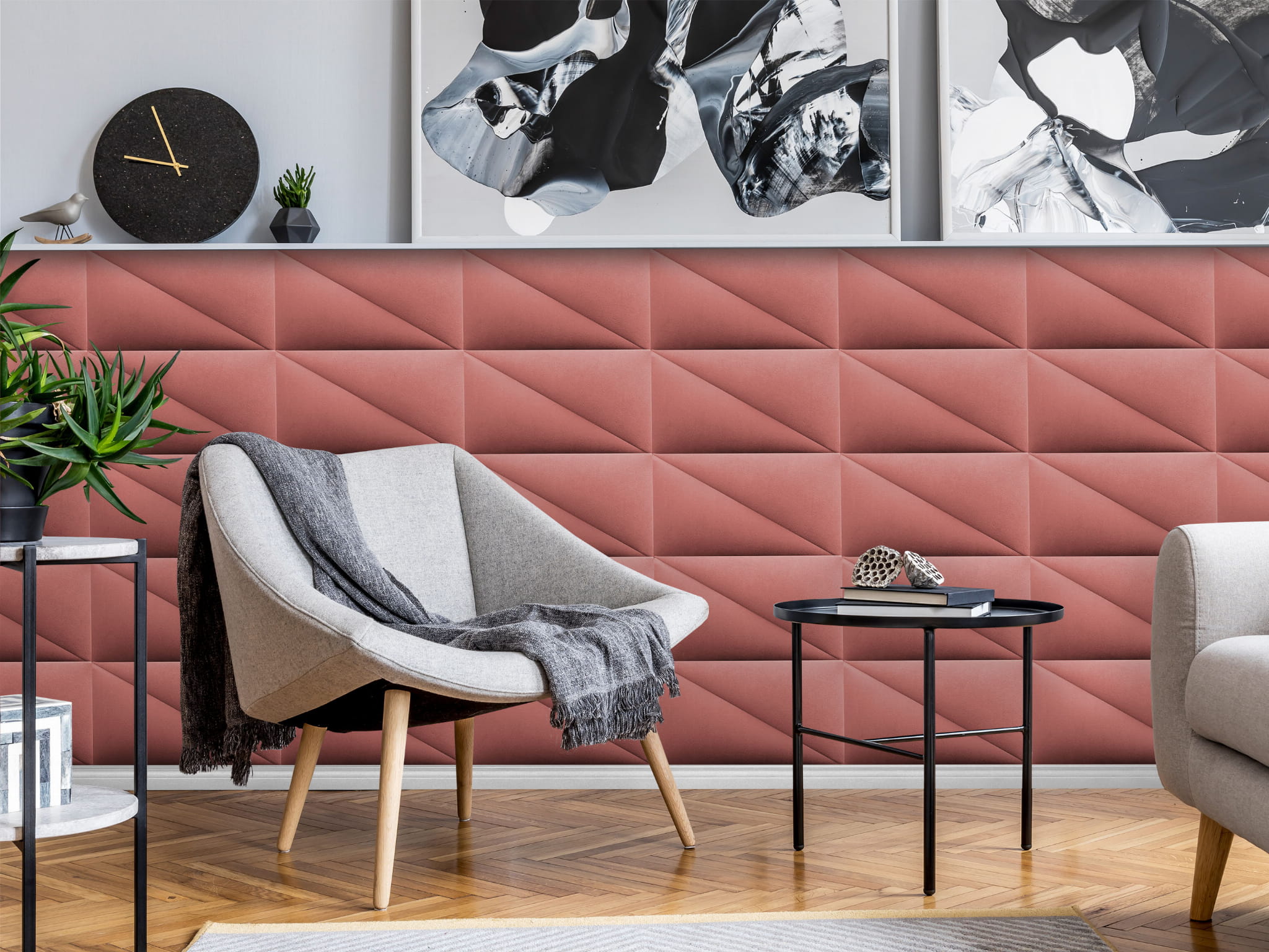 Z naszymi tapicerowanymi panelami ściennymi w kształcie trójkąta stworzysz swoją własną strefę komfortu i stylu.