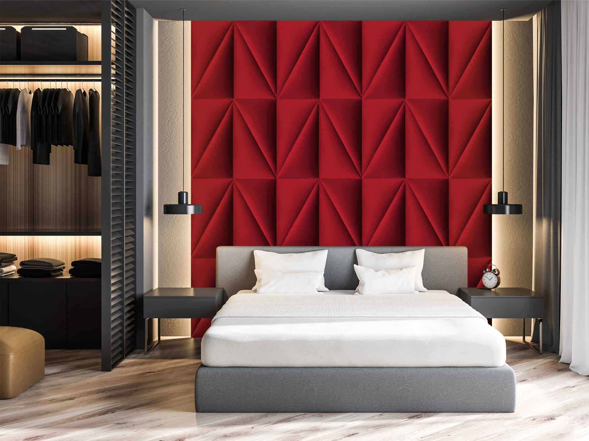 Z naszymi tapicerowanymi panelami ściennymi w kształcie trójkąta stworzysz swoją własną strefę komfortu i stylu.