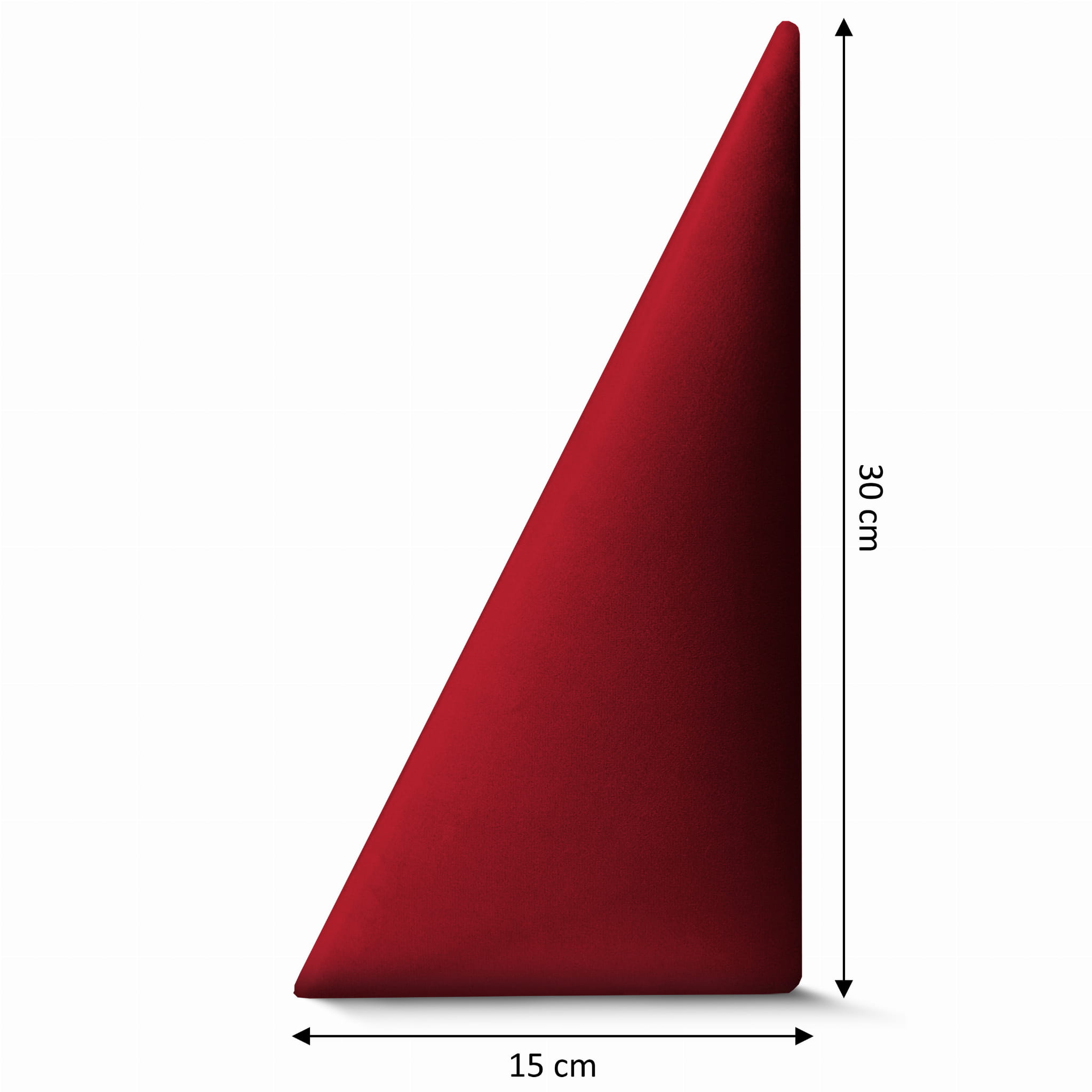 Panel ścienny 15x30 cm tapicerowany w kształcie trójkąta – Wezgłowie w kolorze czerwonym z tkaniny welurowej