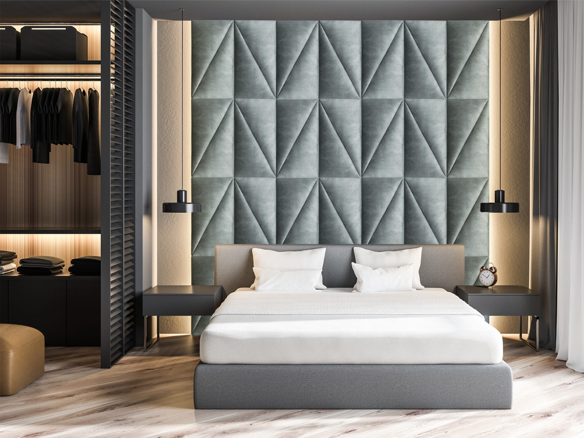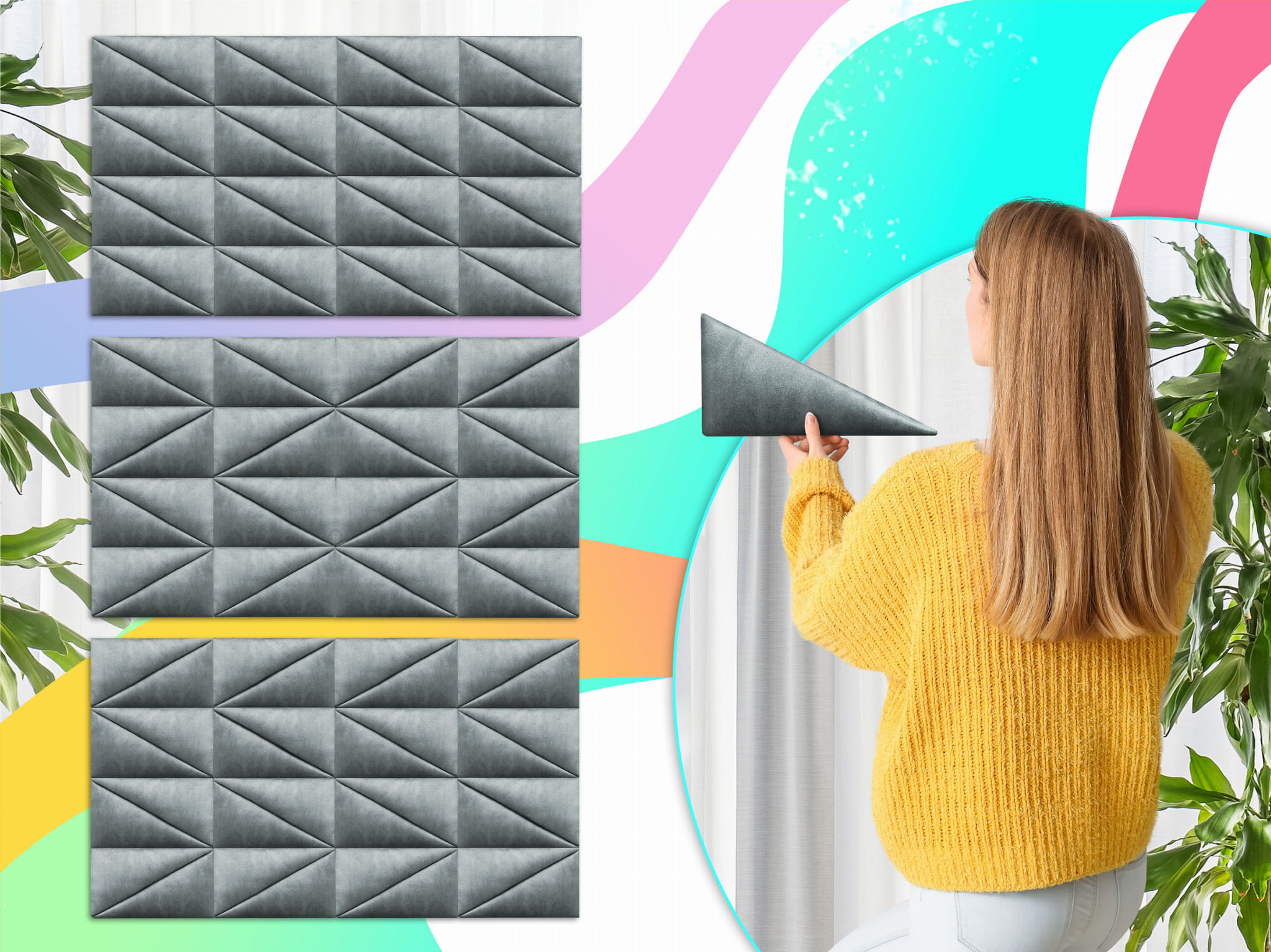 Z naszymi tapicerowanymi panelami ściennymi w kształcie trójkąta stworzysz swoją własną strefę komfortu i stylu.