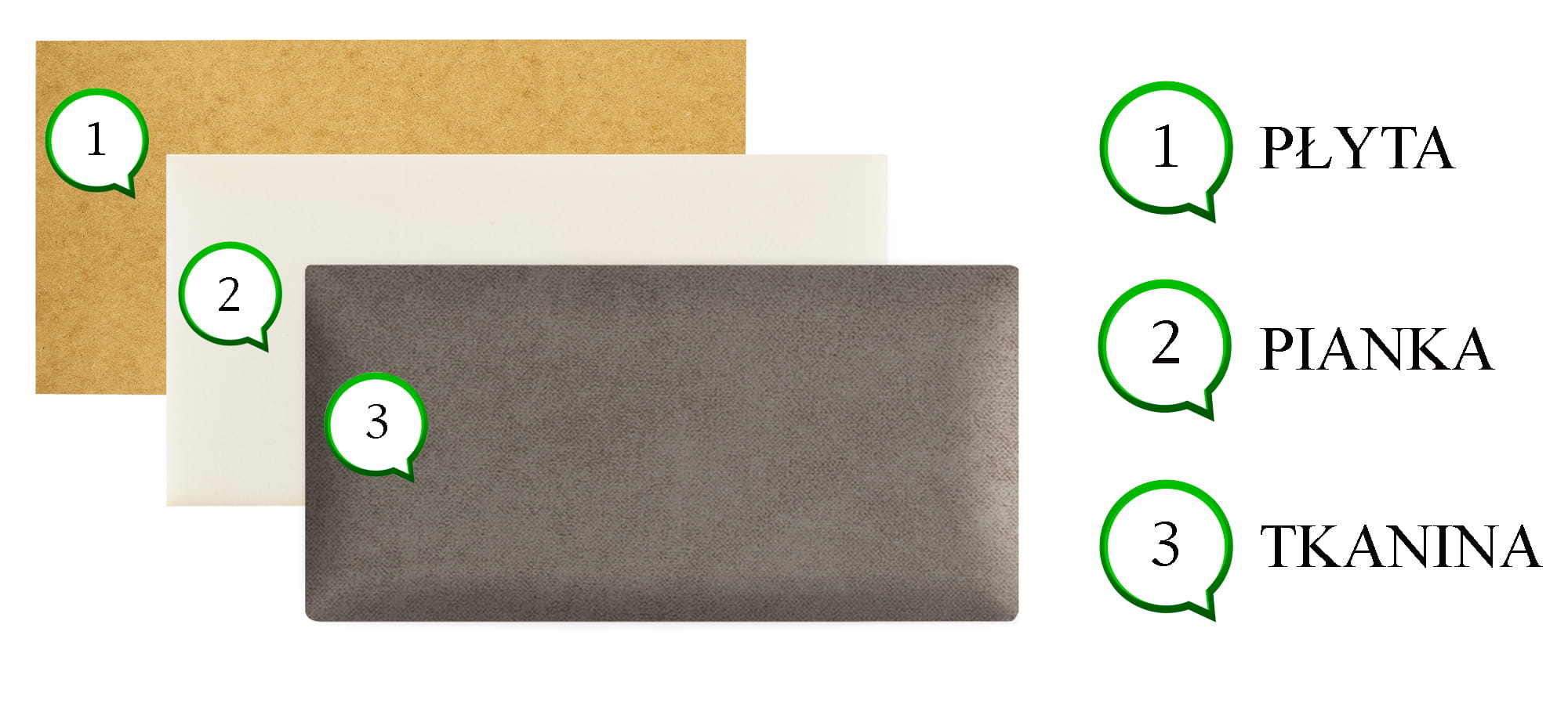 Wypełnienie: płyta HDF, pianka, materiał