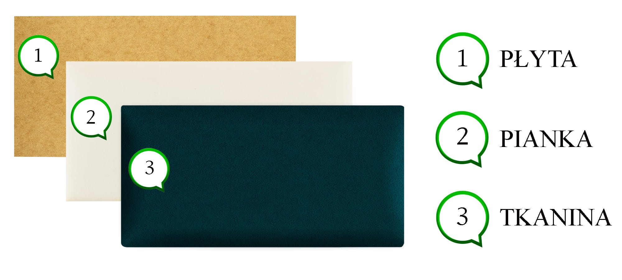 Wypełnienie: płyta HDF, pianka, materiał