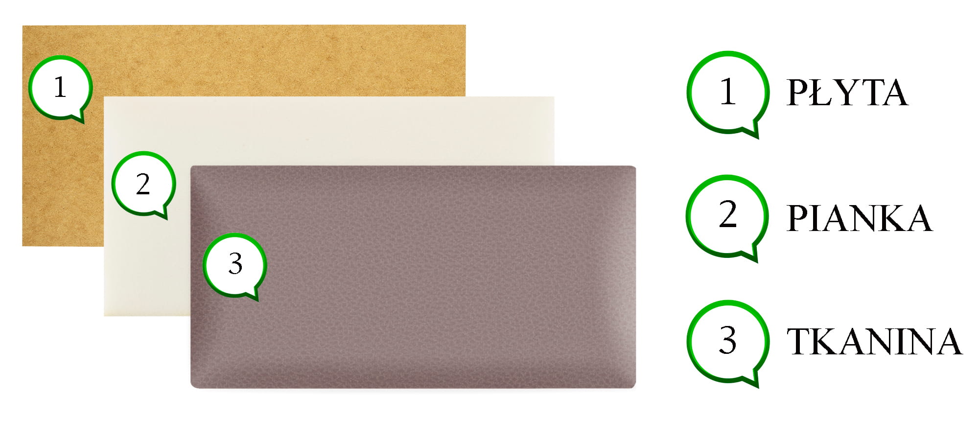 Wypełnienie: płyta HDF, pianka, materiał