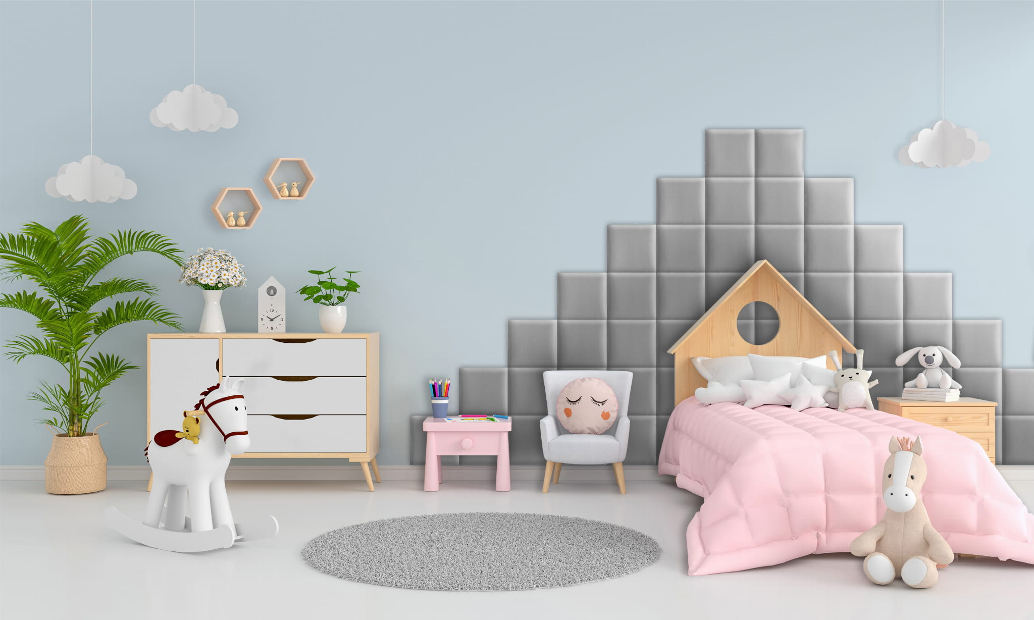 - Wyciszenie pomieszczenia. Potrzebujesz wyciszyć ścianę w sypialni lub pokoju dziecka? Dzięki funkcji dźwiękochłonnej nasze panele sprawdzą się w tym idealnie.