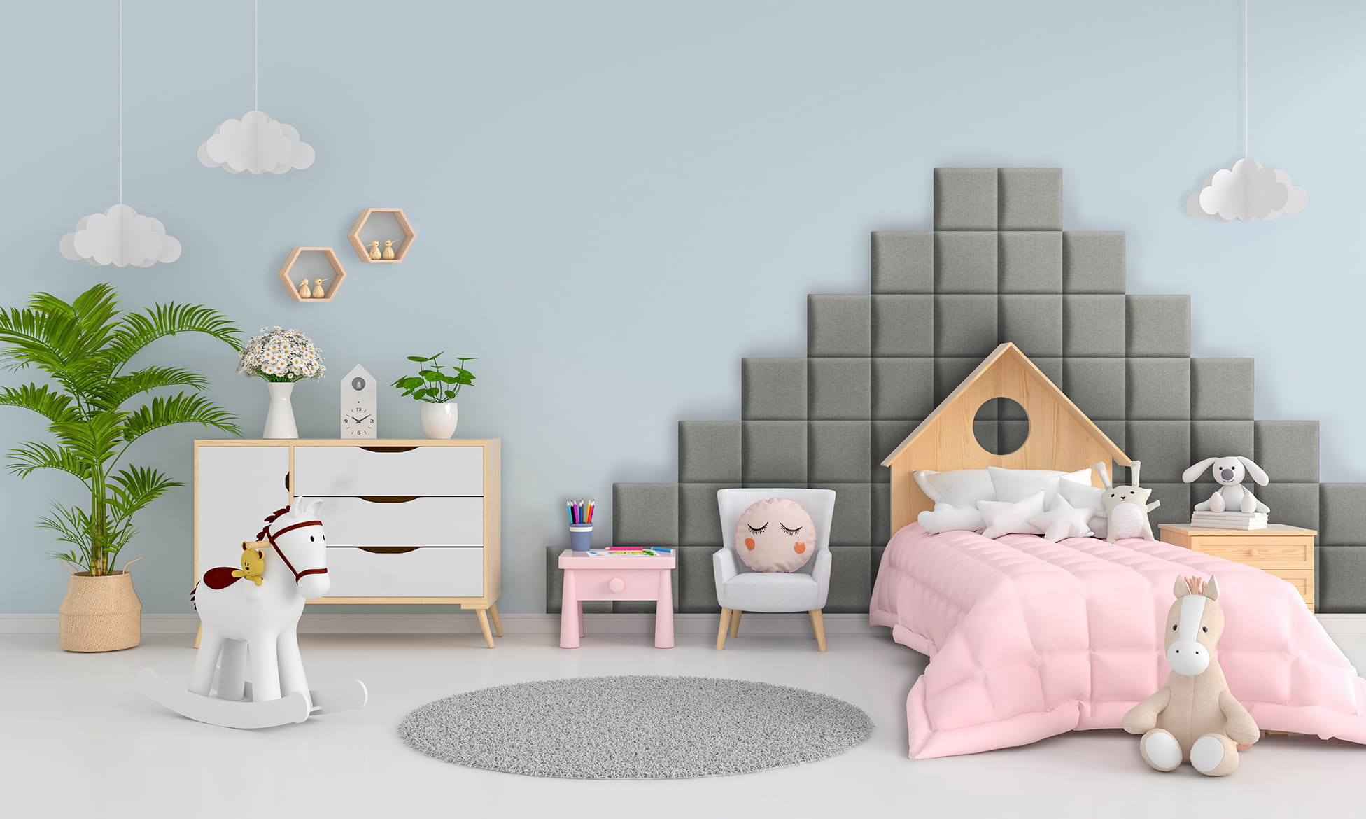 - Wyciszenie pomieszczenia. Potrzebujesz wyciszyć ścianę w sypialni lub pokoju dziecka? Dzięki funkcji dźwiękochłonnej nasze panele sprawdzą się w tym idealnie.