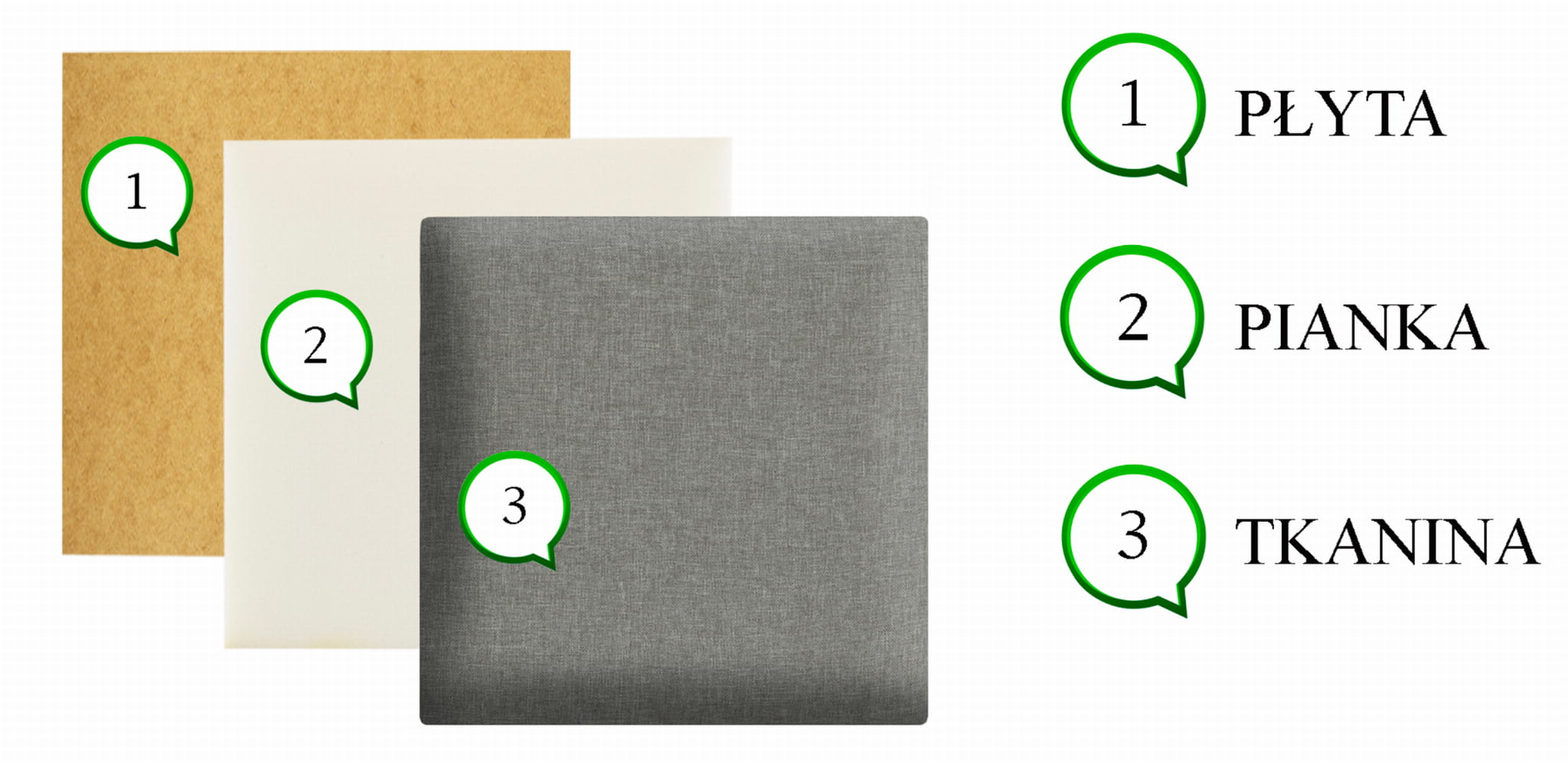 Wypełnienie: płyta HDF, pianka, materiał
