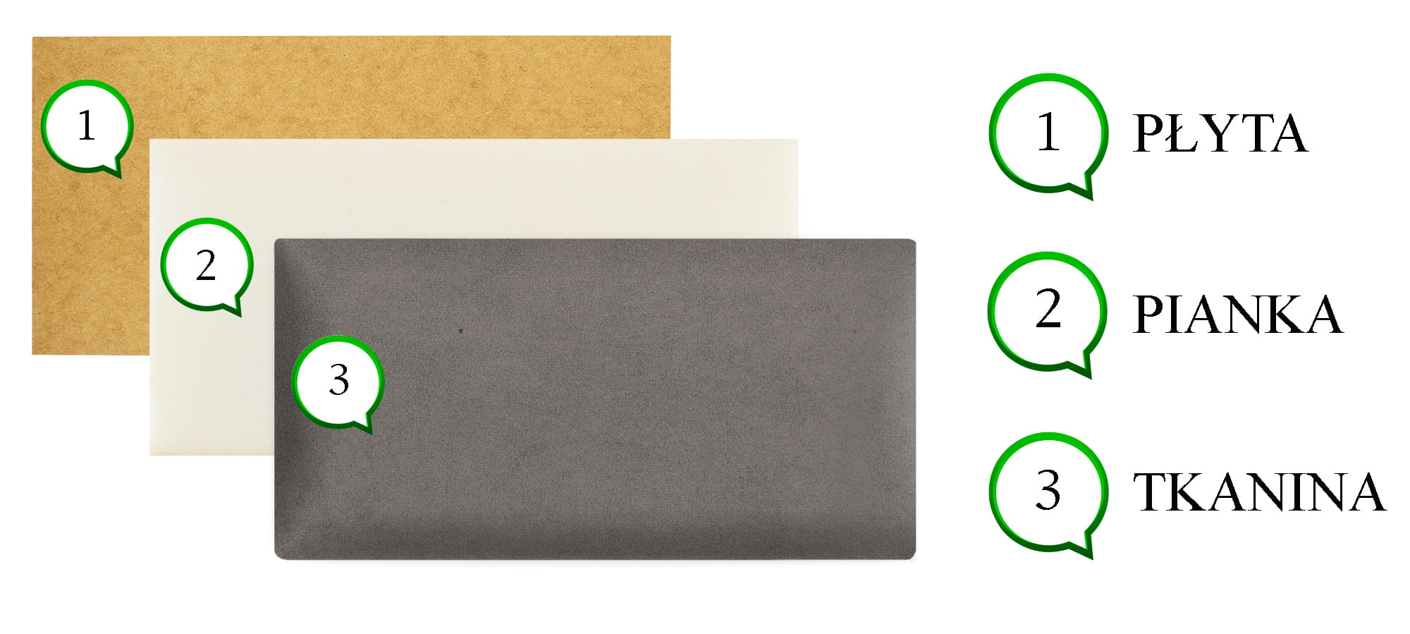 Trwała i mocna konstrukcja. Nasze panele produkowane są z materiałów najwyższej jakości. Solidna płyta o grubości 8 mm sprawia, że wezgłowie będzie służyło Ci przez lata bez potrzeby wymiany.