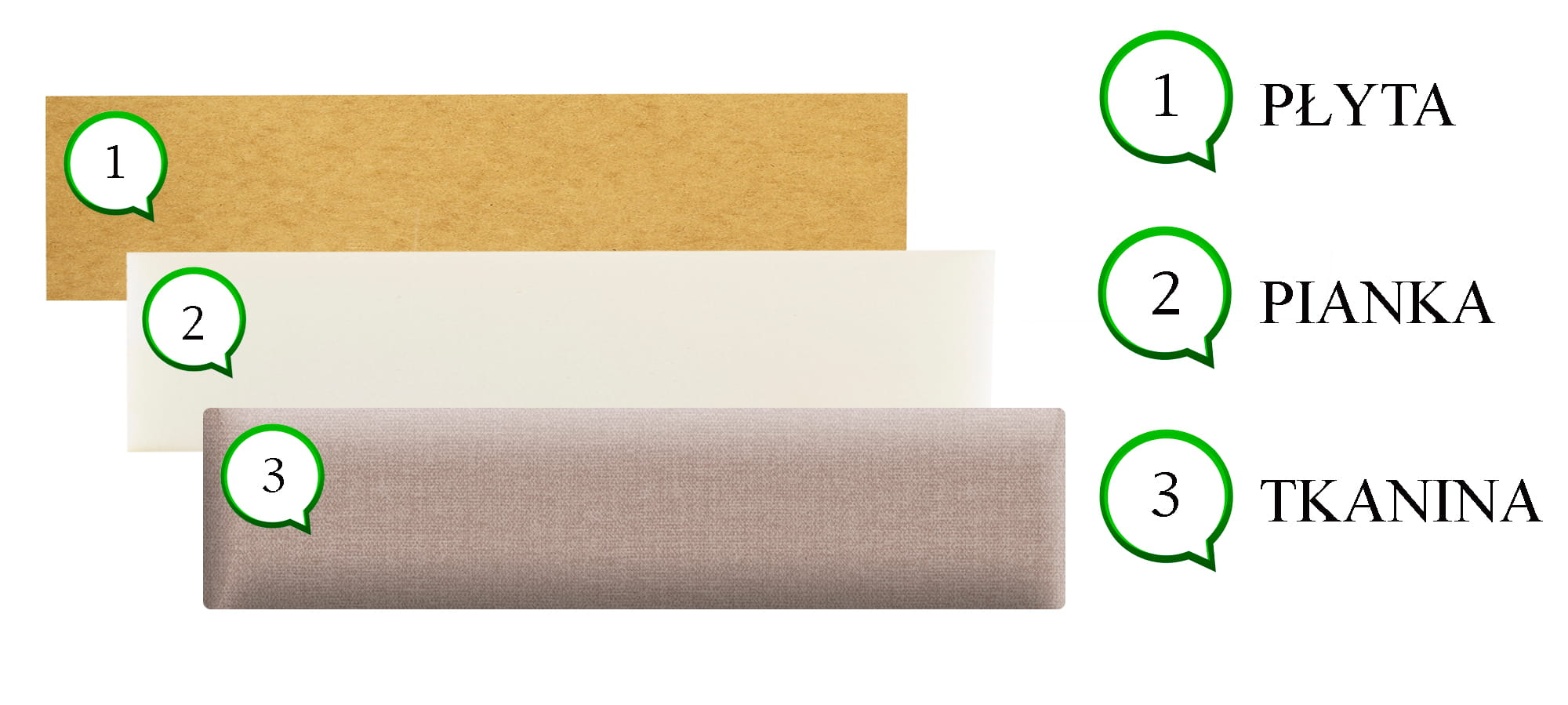 Wypełnienie: płyta HDF, pianka, materiał