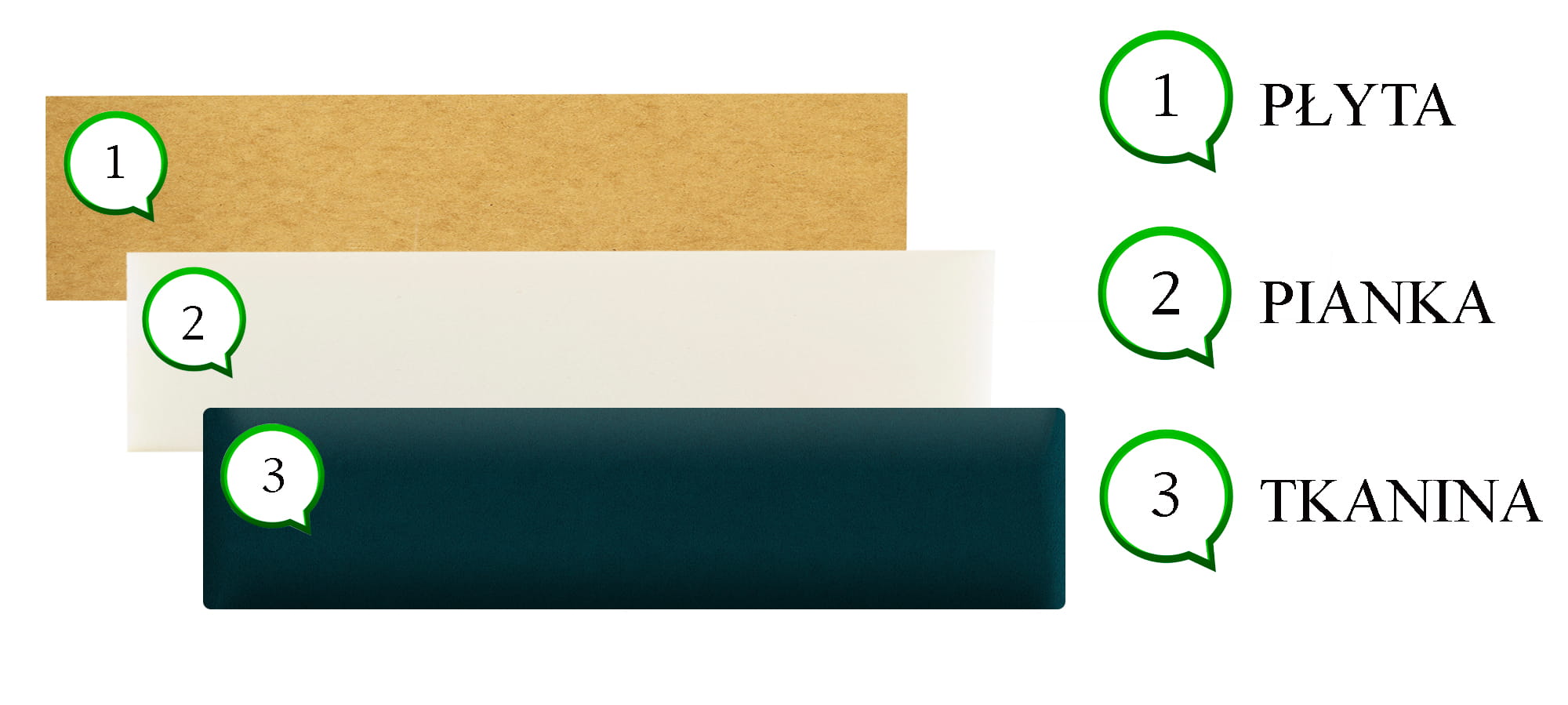 Wypełnienie: płyta HDF, pianka, materiał