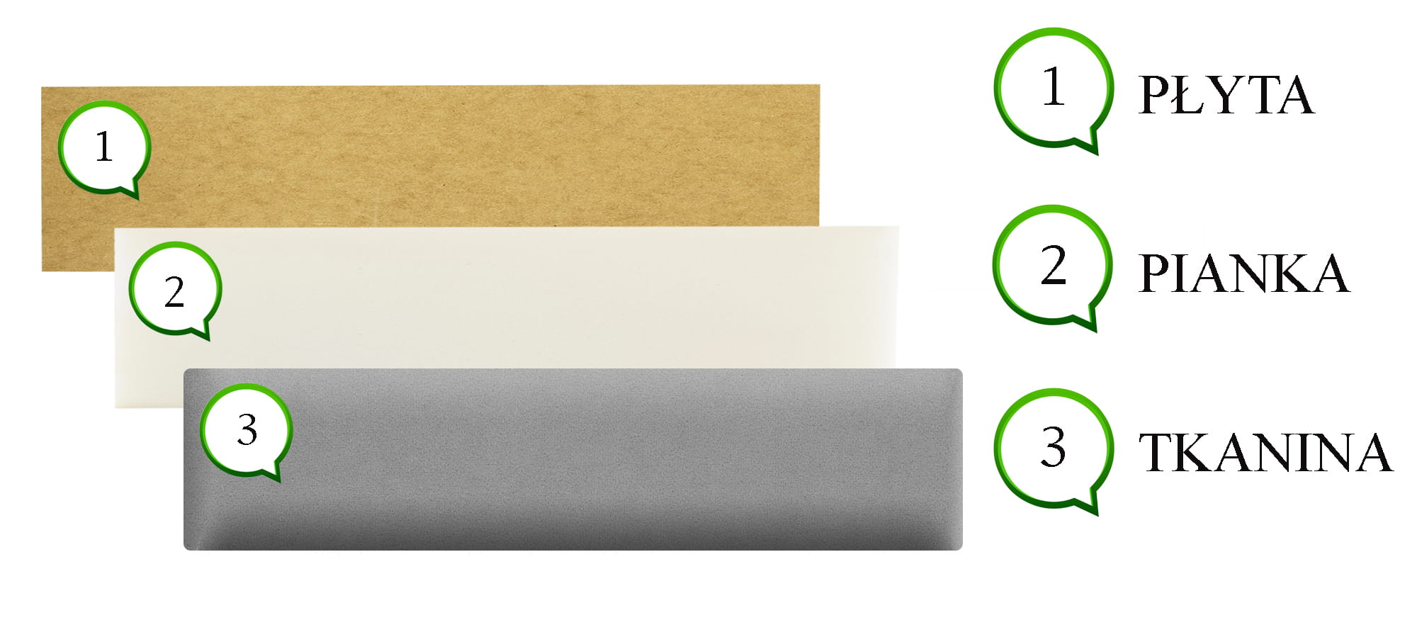 Wypełnienie: płyta HDF, pianka, materiał
