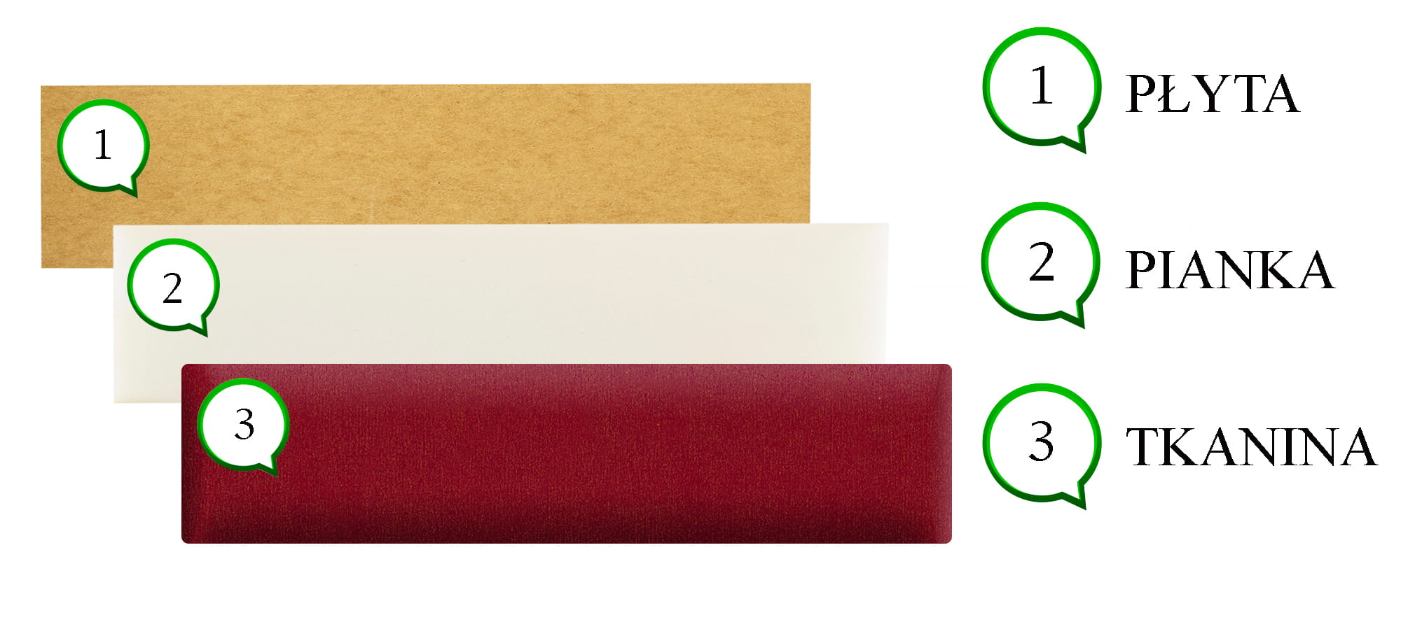Wypełnienie: płyta HDF, pianka, materiał