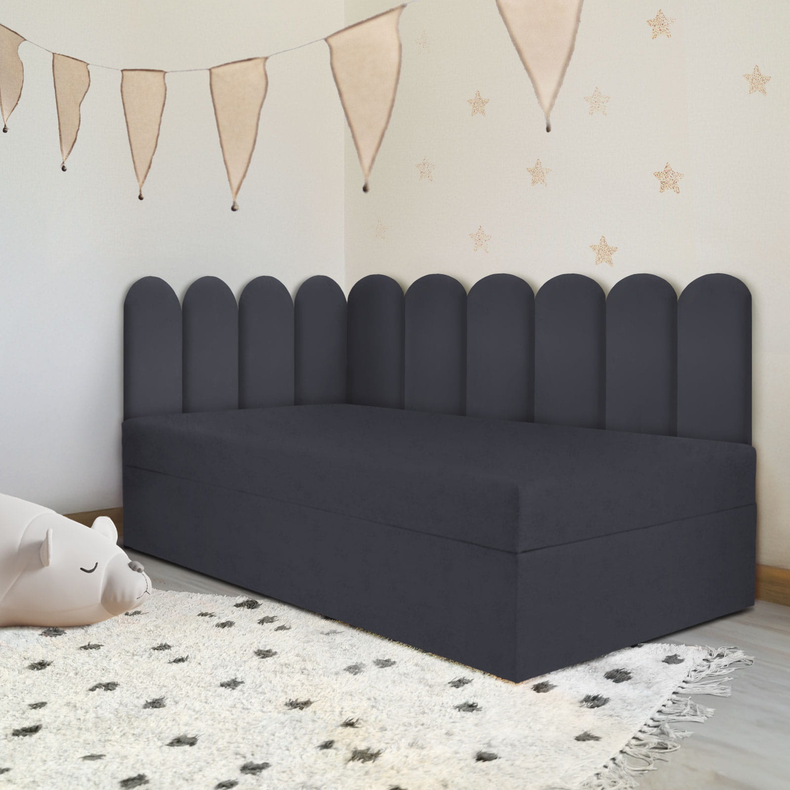 - Oparcie dla pleców i wygodne siedzisko: Doskonale nadają się jako miękkie i przyjemne w dotyku oparcia lub siedziska. W sypialni mogą pełnić funkcję eleganckiego wezgłowia, w pokoju dziecięcym zapewniają bezpieczeństwo przy łóżeczku, a w korytarzu świetnie sprawdzają się jako wykończenie ławek.
