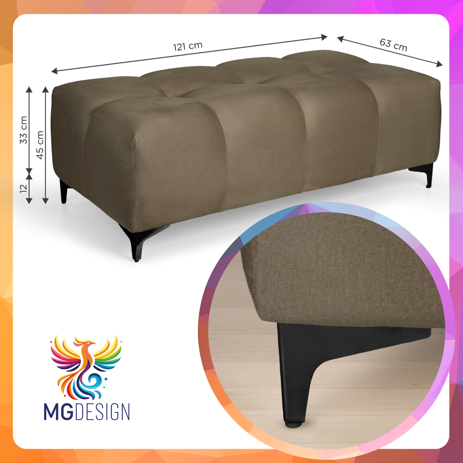 Stabilne, czarne nogi nadają meblowi lekkości wizualnej oraz zapewniają odpowiednią stabilność. Solidna konstrukcja i staranne wykonanie sprawiają, że pufa zachowuje swój estetyczny wygląd przez długi czas.