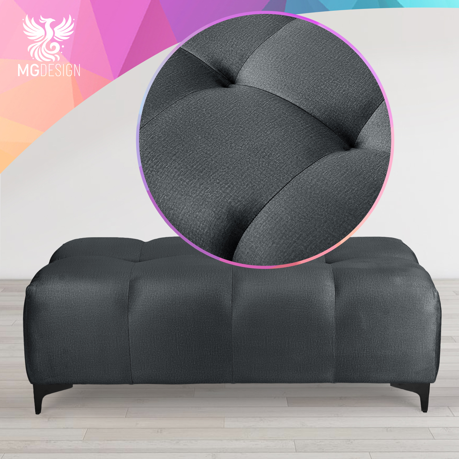 Stabilne, czarne nogi nadają meblowi lekkości wizualnej oraz zapewniają odpowiednią stabilność. Solidna konstrukcja i staranne wykonanie sprawiają, że pufa zachowuje swój estetyczny wygląd przez długi czas.