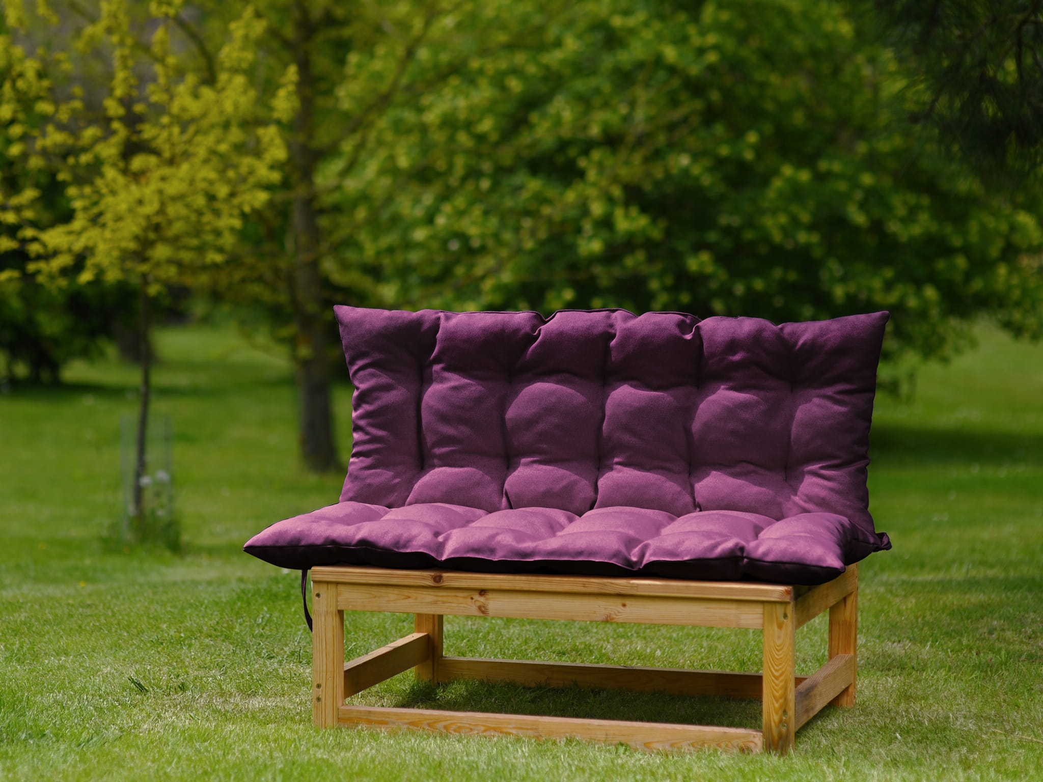 Miękka poduszka w kolorze fioletowym na huśtawkę, ławkę w rozmiarze 120x100 cm z troczkami do przywiązania