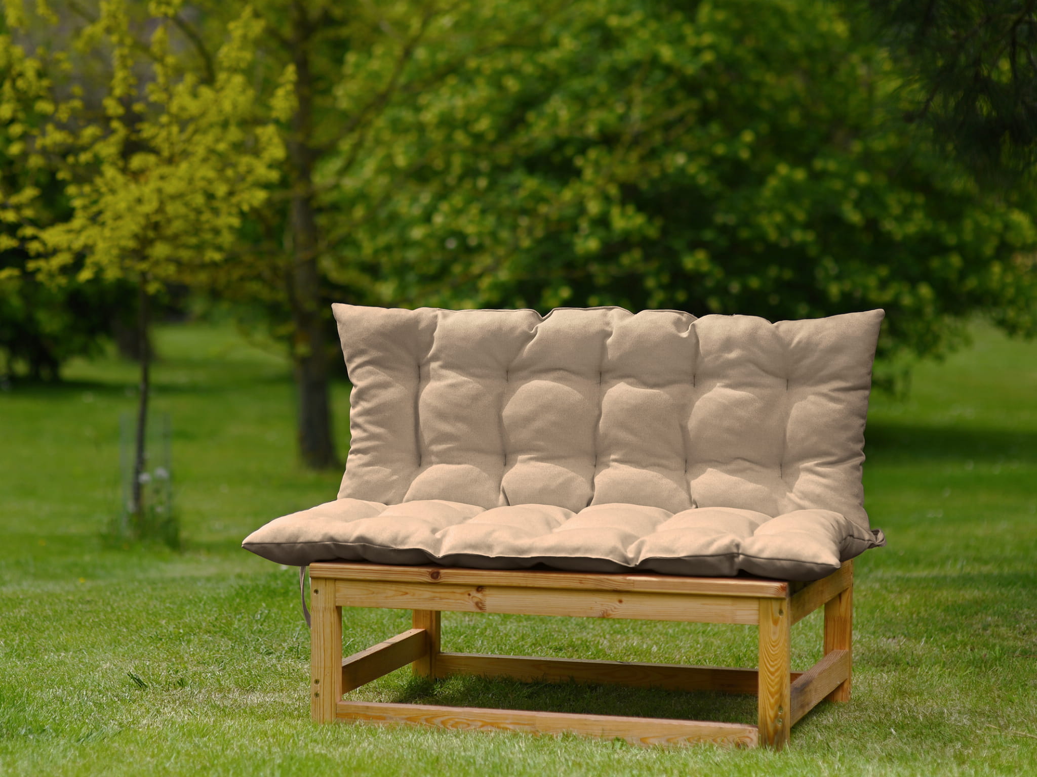 Miękka poduszka w kolorze jasnobrązowym na huśtawkę, ławkę w rozmiarze 120x100 cm z troczkami do przywiązania