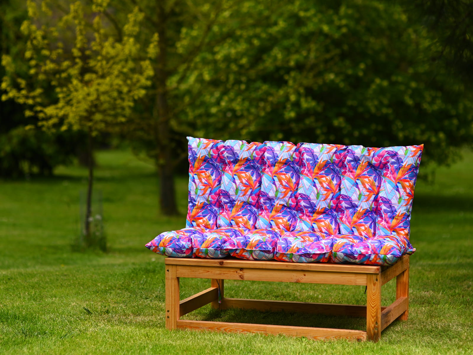 Poduszka ogrodowa z egzotycznym motywem na ławkę to prawdziwy must-have każdego sezonu wiosennego-letniego.