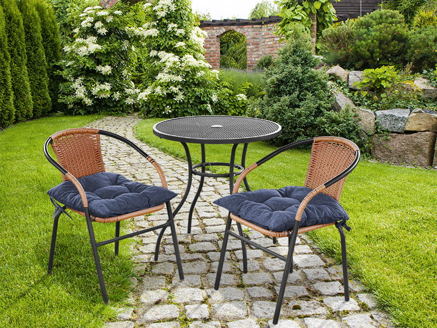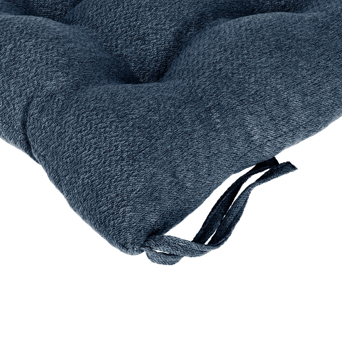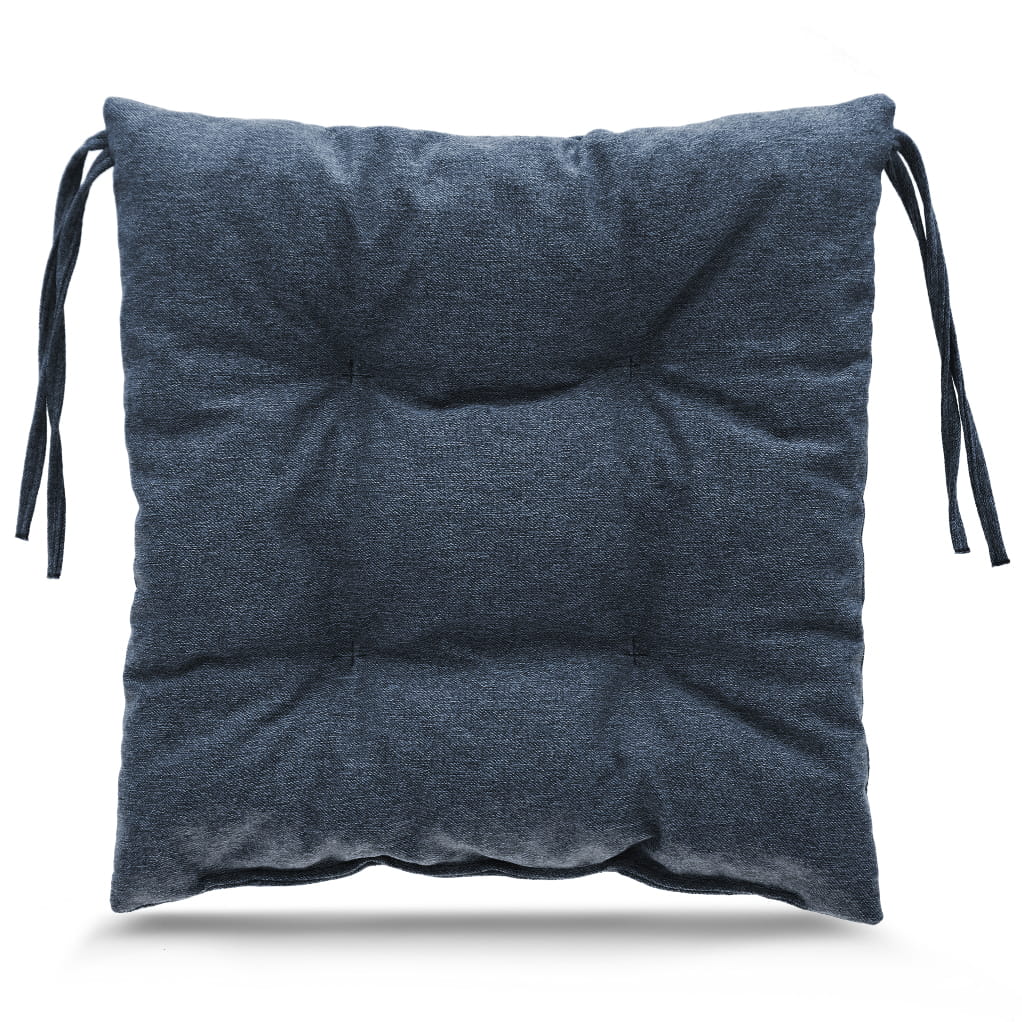 Miękka poduszka w kolorze granatowym na krzesło ogrodowe w rozmiarze 40x40 cm z troczkami do przywiązania