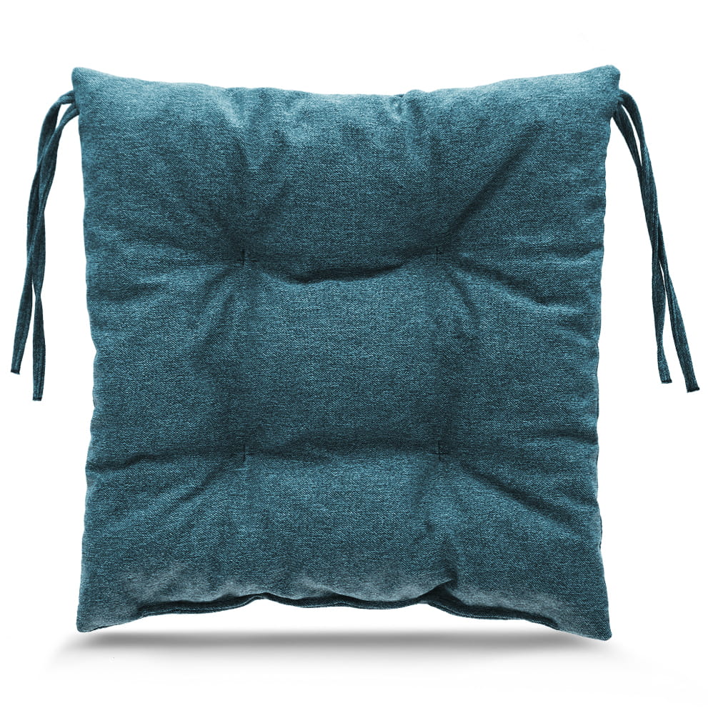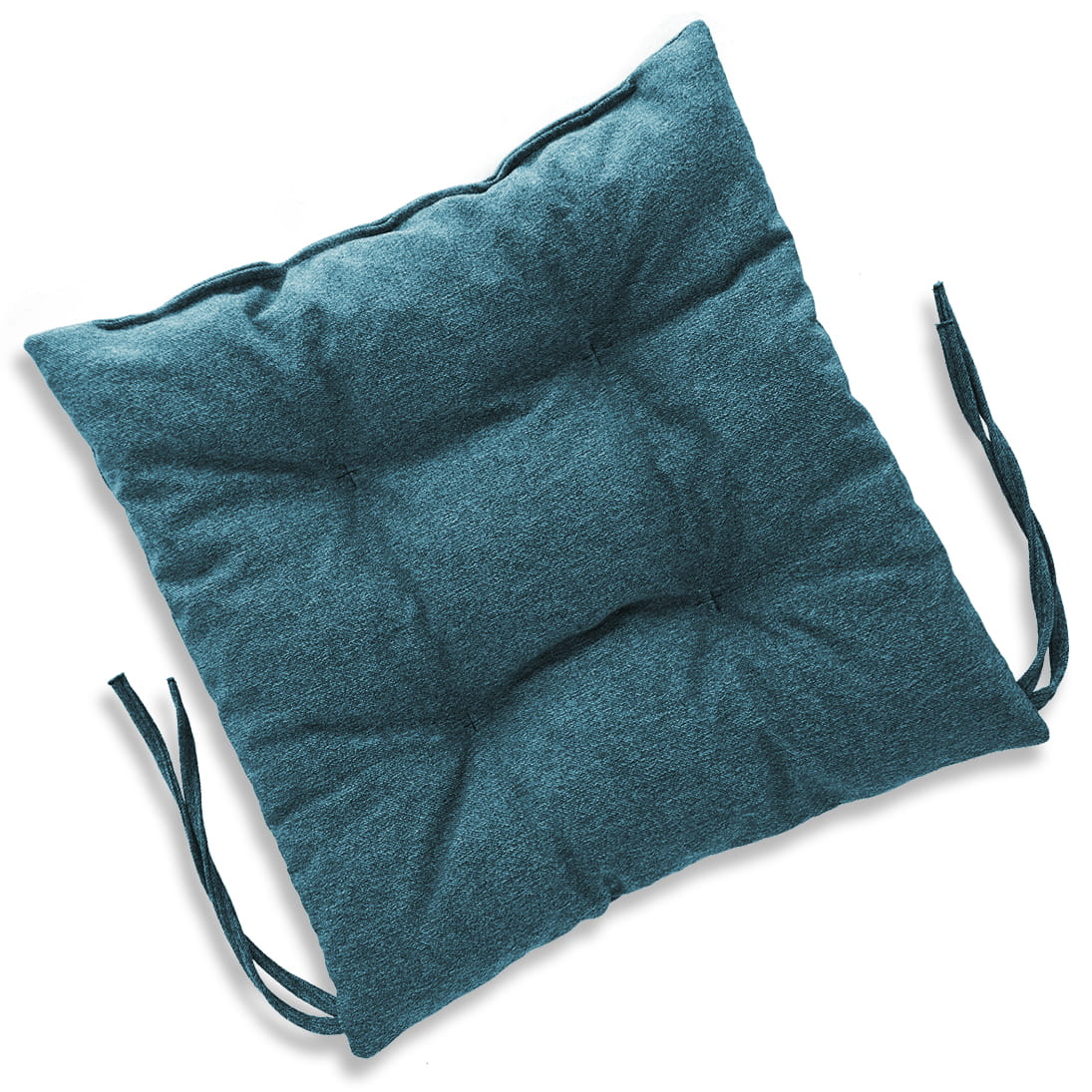 Miękka poduszka w kolorze morskim na krzesło ogrodowe w rozmiarze 40x40 cm z troczkami do przywiązania