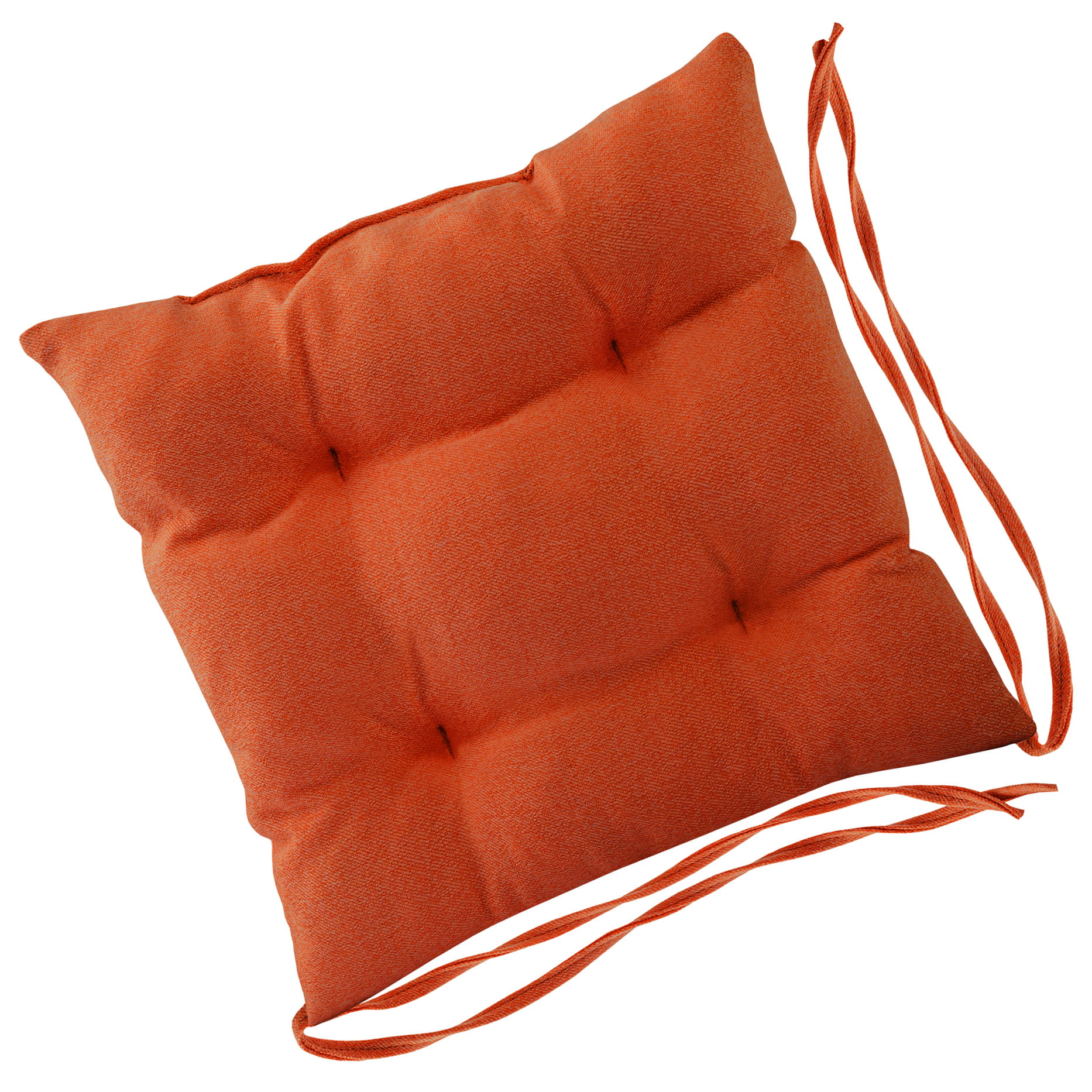 Miękka poduszka w kolorze pomarańczowym na krzesło ogrodowe w rozmiarze 40x40 cm z troczkami do przywiązania