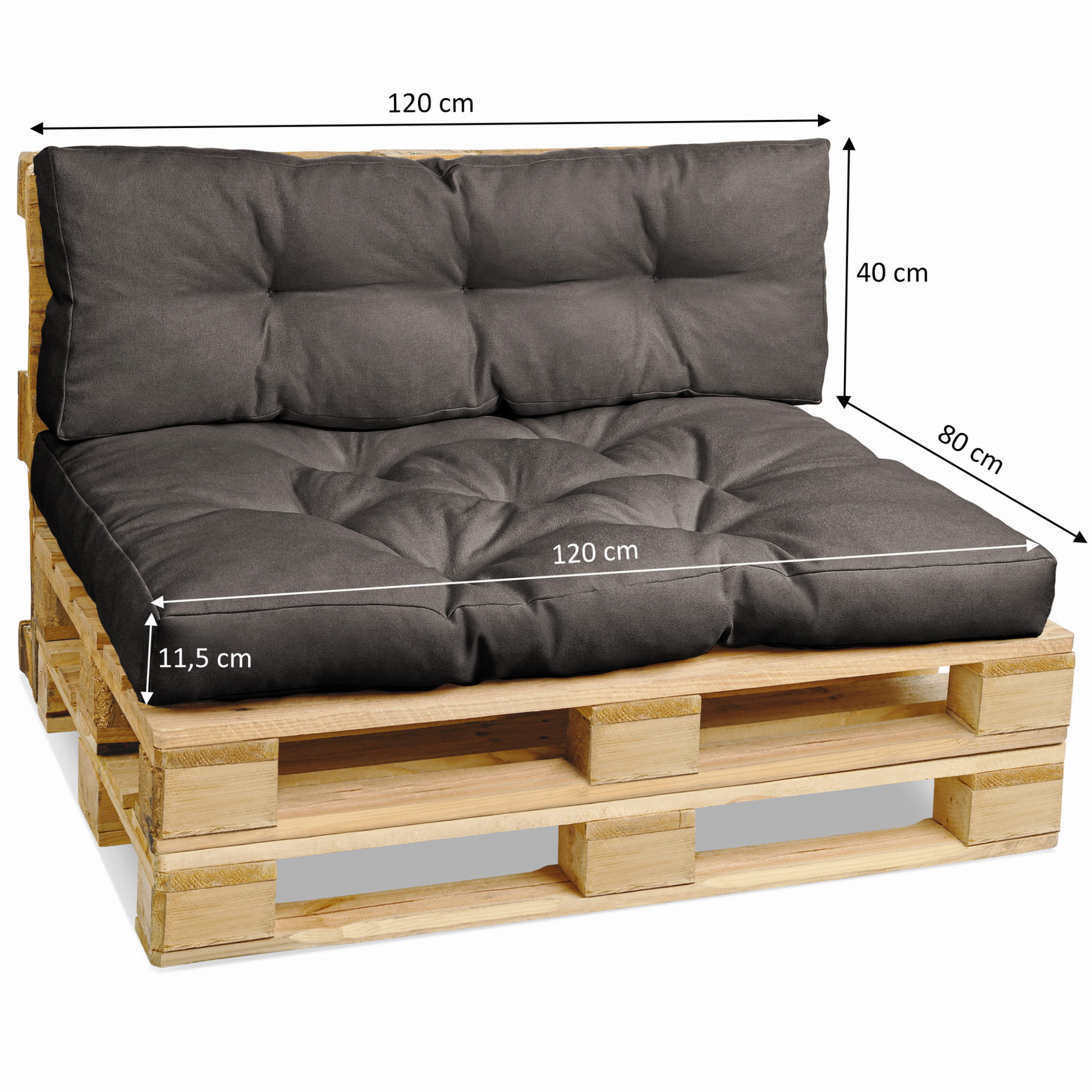 Miękkie poduszki w kolorze grafitowym na paletę w rozmiarze 120x40, 120x80 cm
