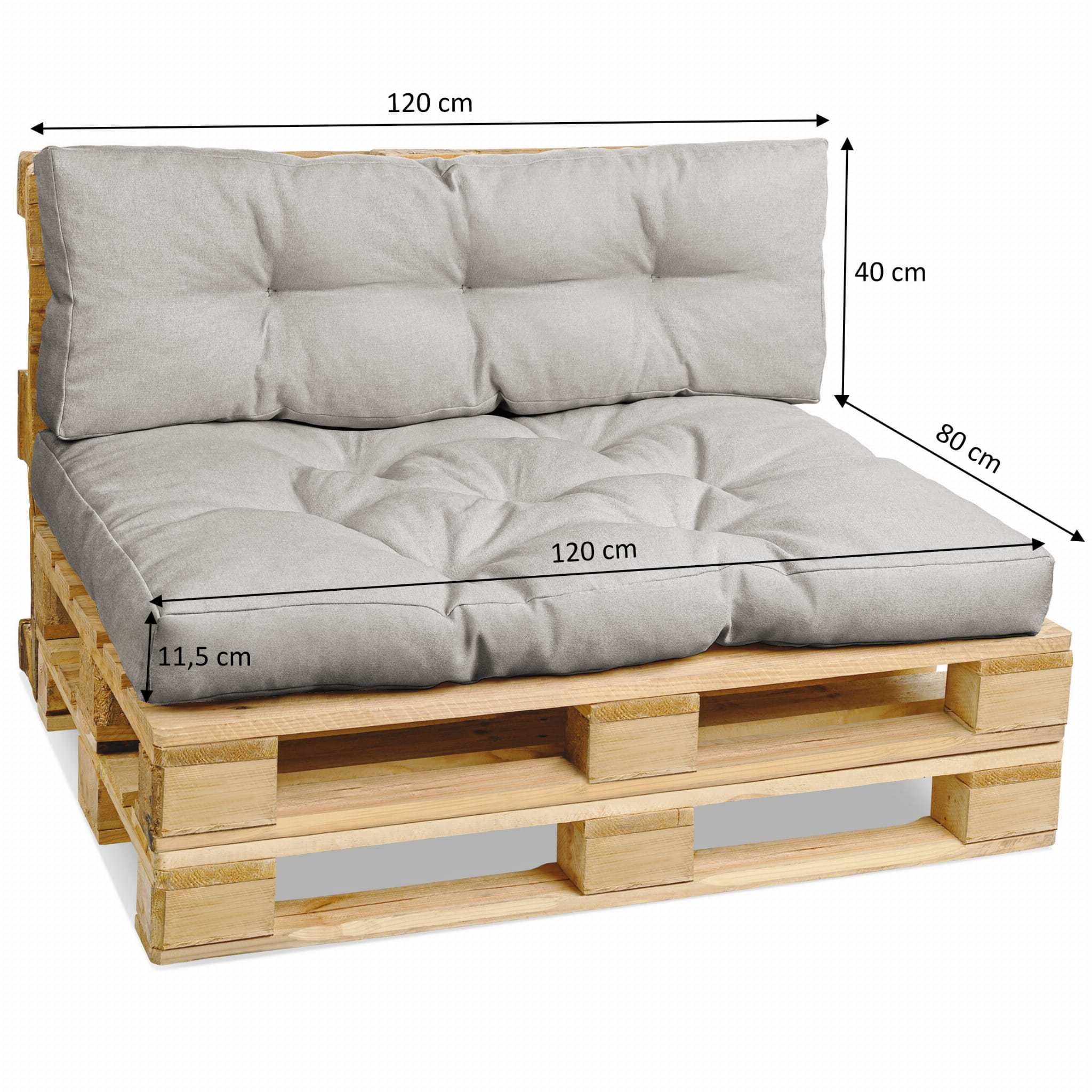Poduszki paletowe 40x120 cm, 80x120 cm – poduszka ogrodowa na paletę w kolorze jasnoszarym