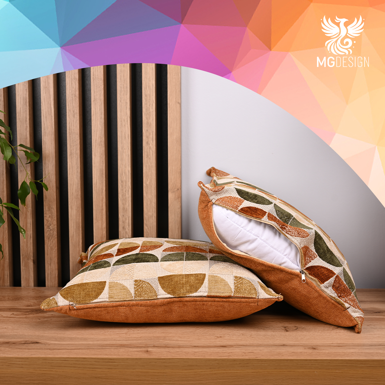 Poszewka z geometrycznym wzorem 35 x 35 cm w kolorze beżowo-pomarańczowym