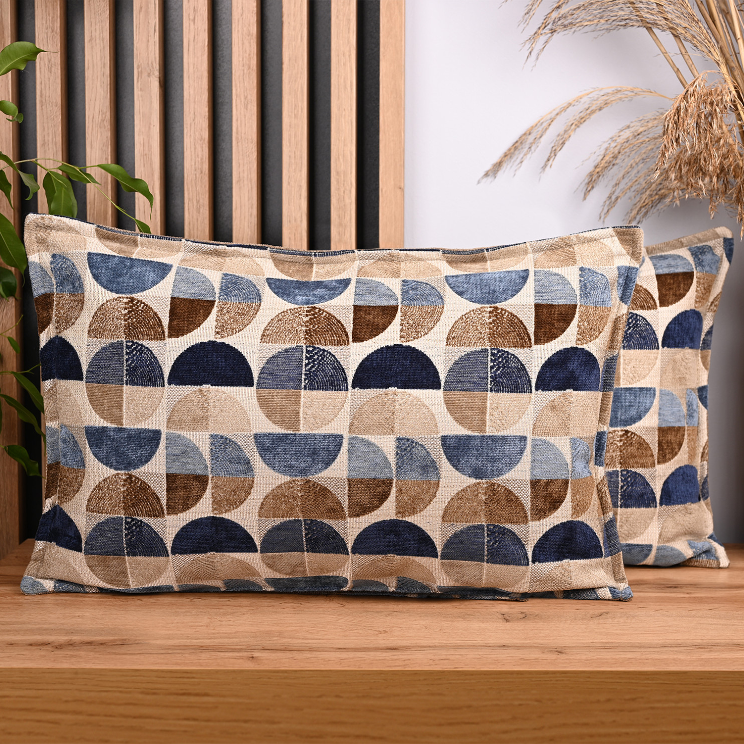 Poszewka z geometrycznym wzorem 40 x 60 cm w kolorze beżowo-niebieskim