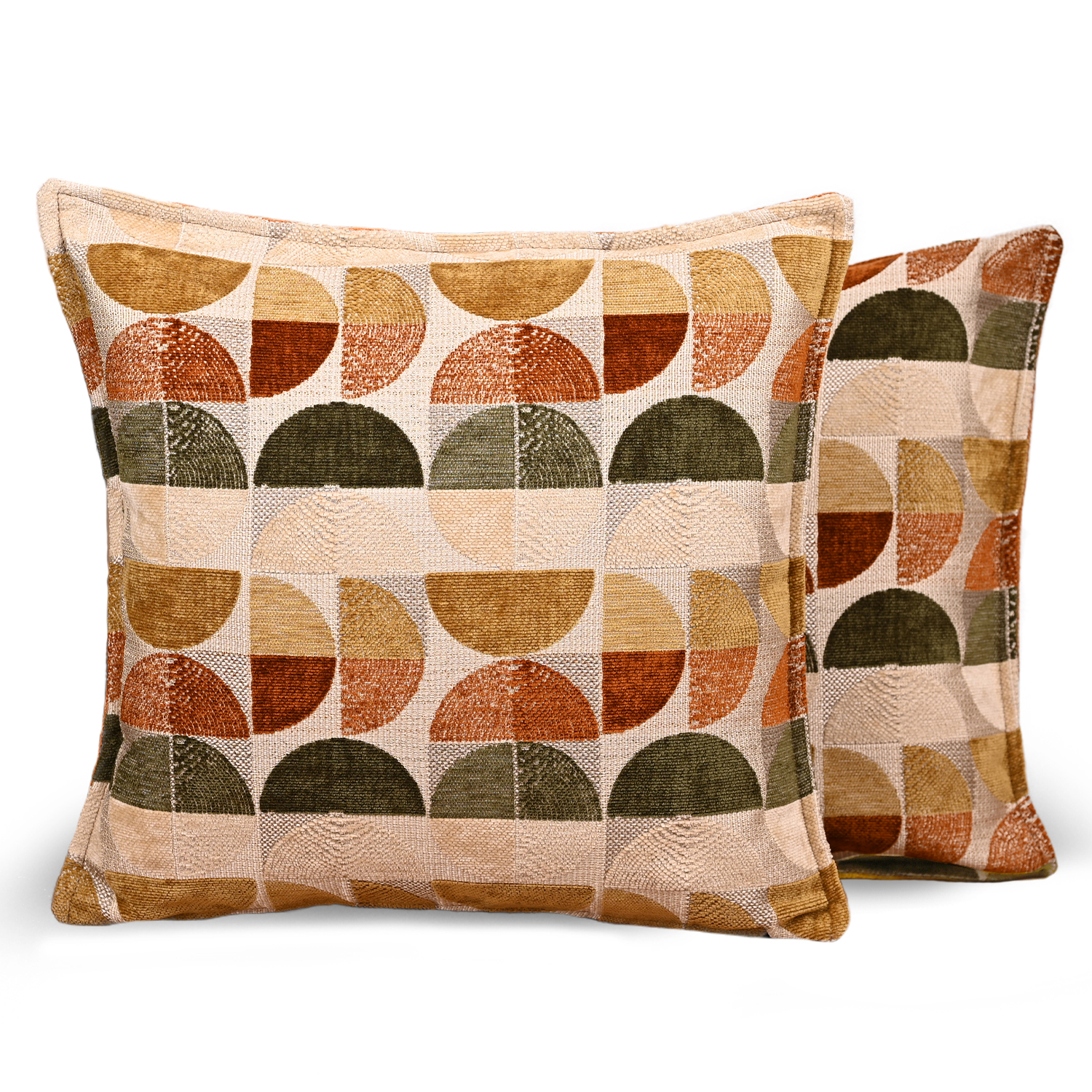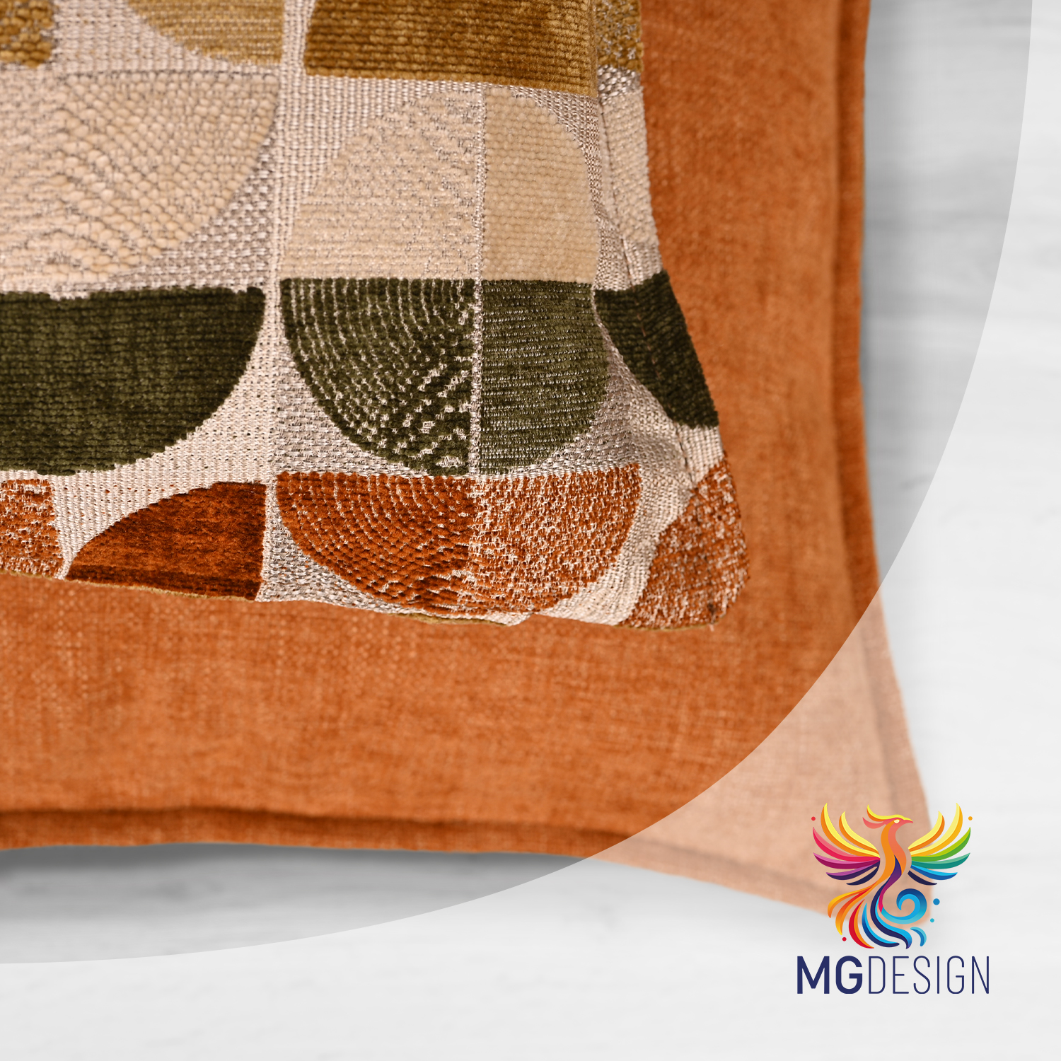 Poszewka z geometrycznym wzorem 55 x 55 cm w kolorze beżowo-pomarańczowym