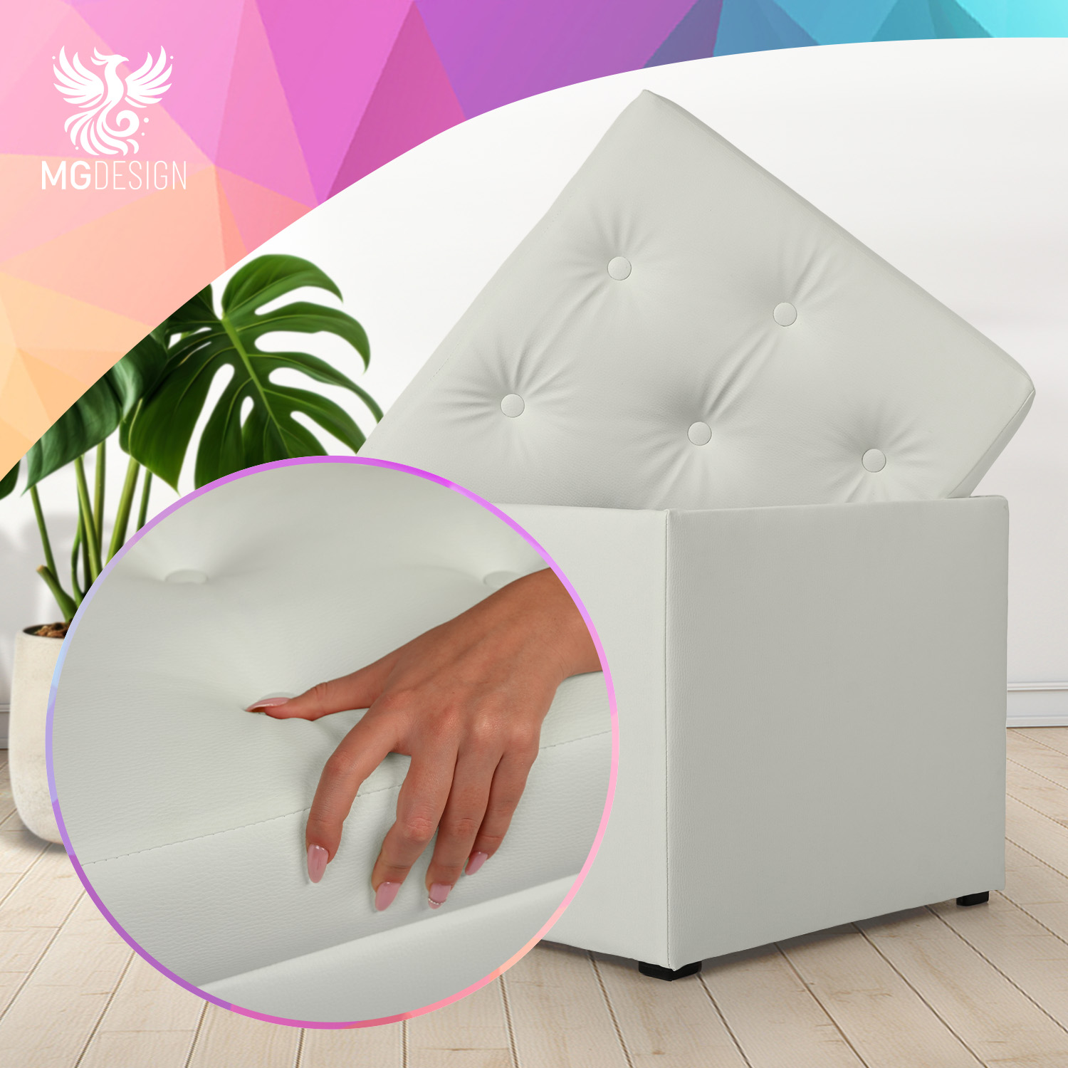 Pufa z eko-skóry ze schowkiem 50 x 50 cm w kolorze bialym