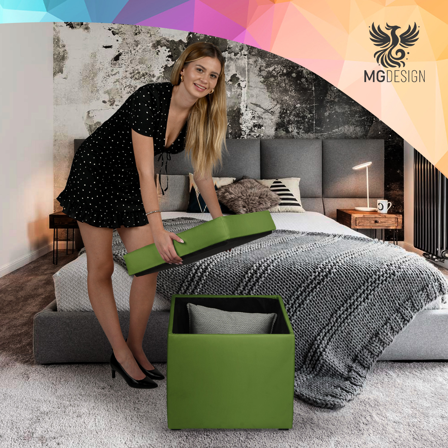 Pufa z eko-skóry ze schowkiem 50 x 50 cm w kolorze zielonym