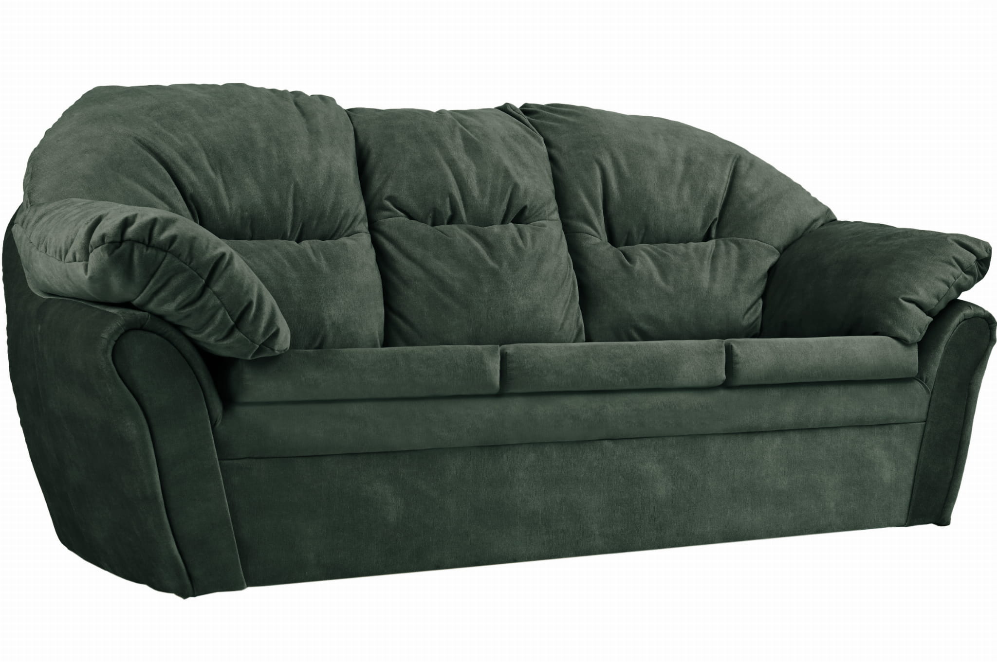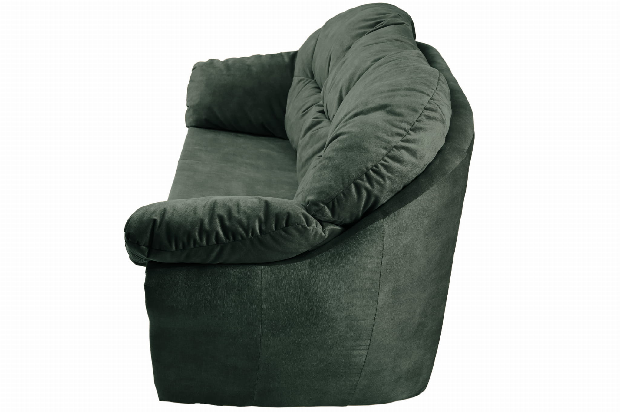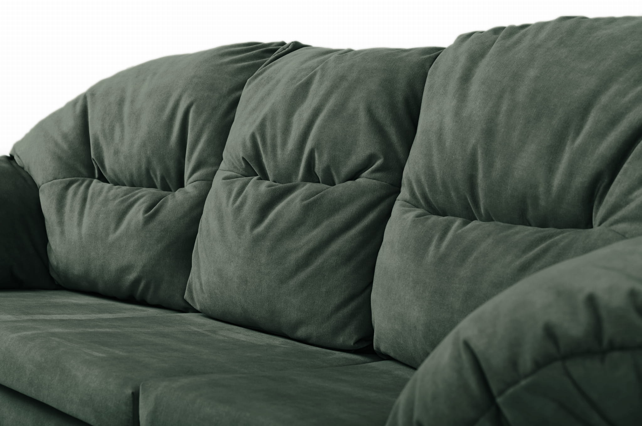Puszysta, miękka sofa Irma z welurowej tkaniny w kolorze ciemnozielonym z oparciem i podłokietnikami mocowanymi na rzepy