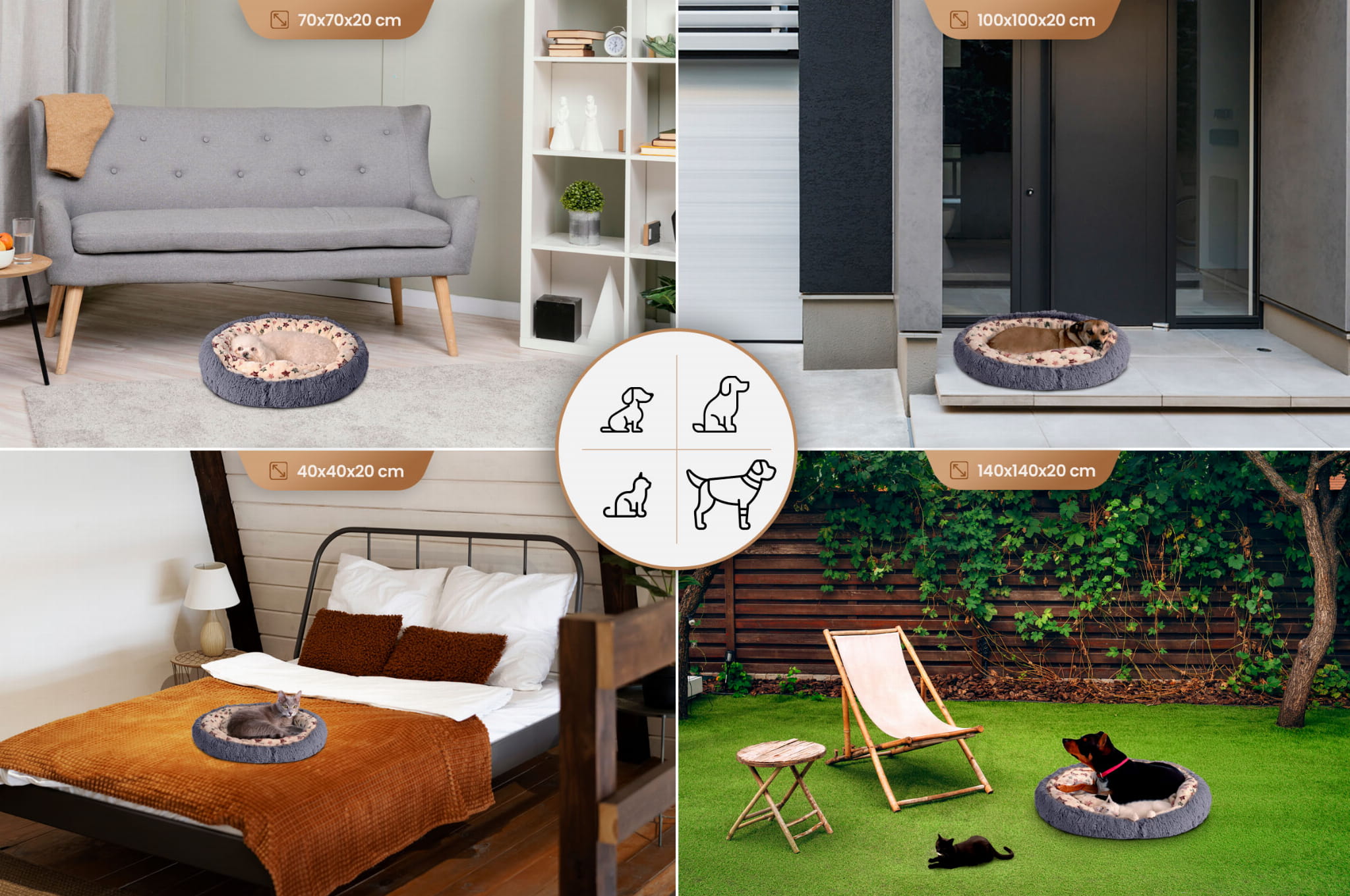 - Ciepło i izolacja: Gruba warstwa tkaniny i wypełnienie chroni przed zimnem, co sprawia, że legowisko jest idealne zarówno na zimowe, jak i letnie dni.