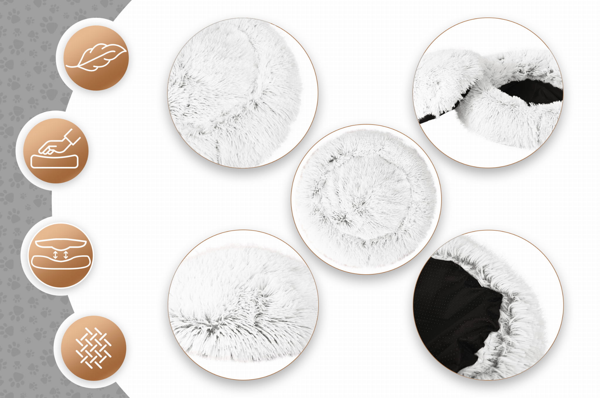- Estetyczny design: futerkowa tkanina nadaje legowisku wyjątkowy, uroczy wygląd, który doskonale komponuje się z wystrojem Twojego wnętrza.