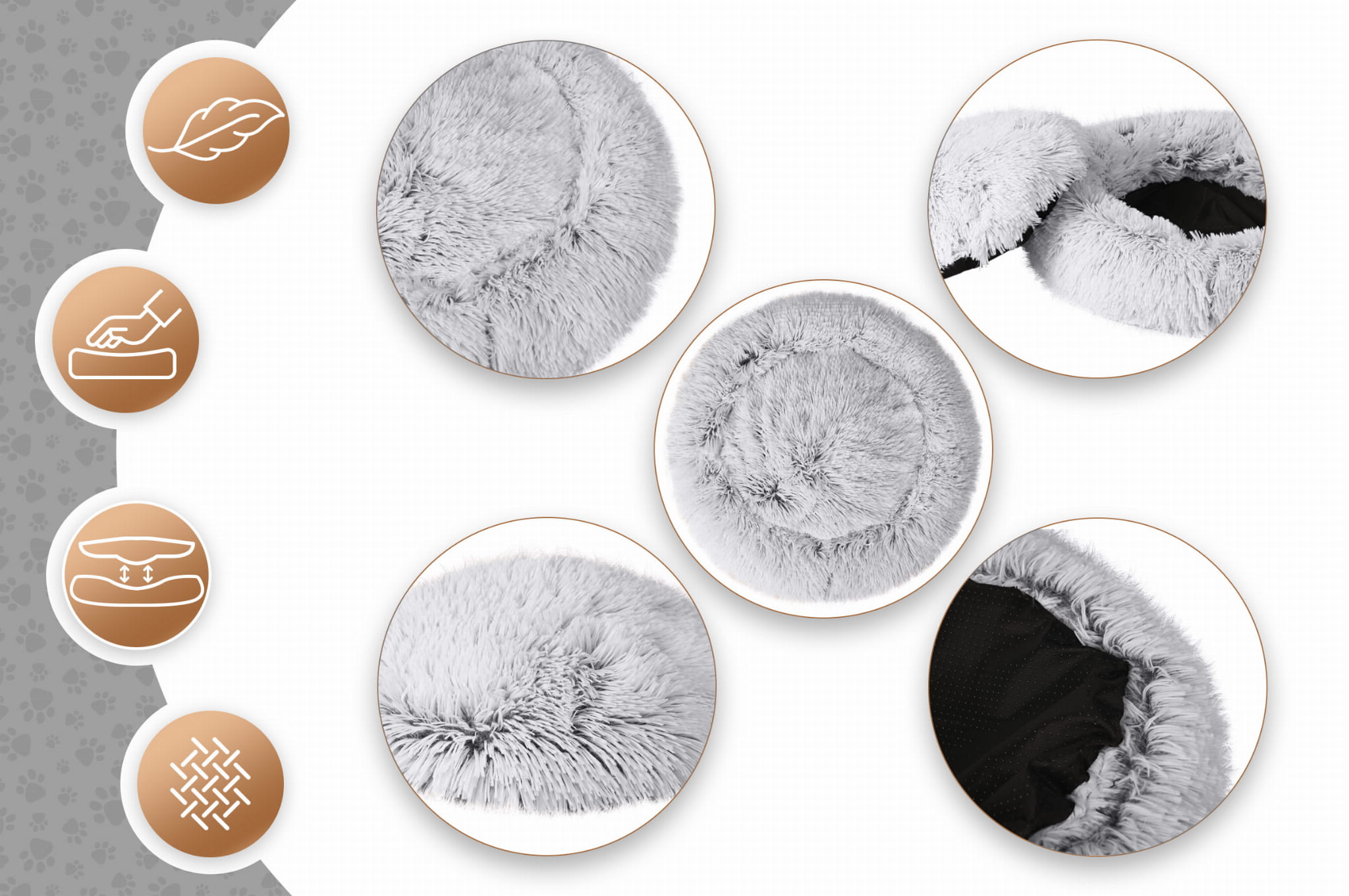 - Estetyczny design: futerkowa tkanina nadaje legowisku wyjątkowy, uroczy wygląd, który doskonale komponuje się z wystrojem Twojego wnętrza.