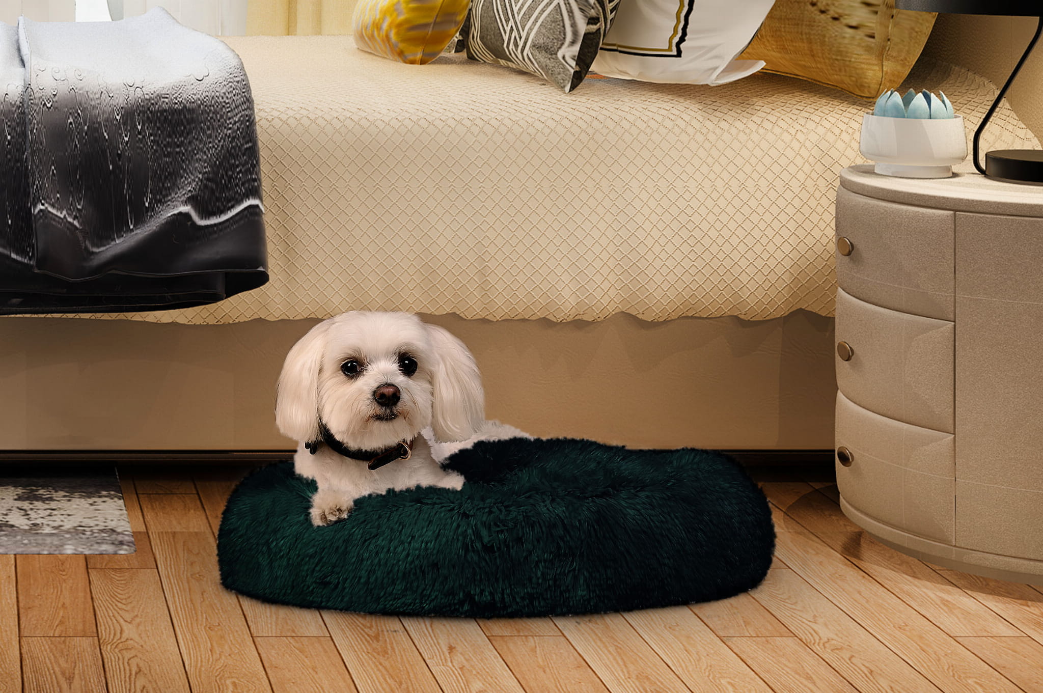 - Estetyczny design: futerkowa tkanina nadaje legowisku wyjątkowy, uroczy wygląd, który doskonale komponuje się z wystrojem Twojego wnętrza.
