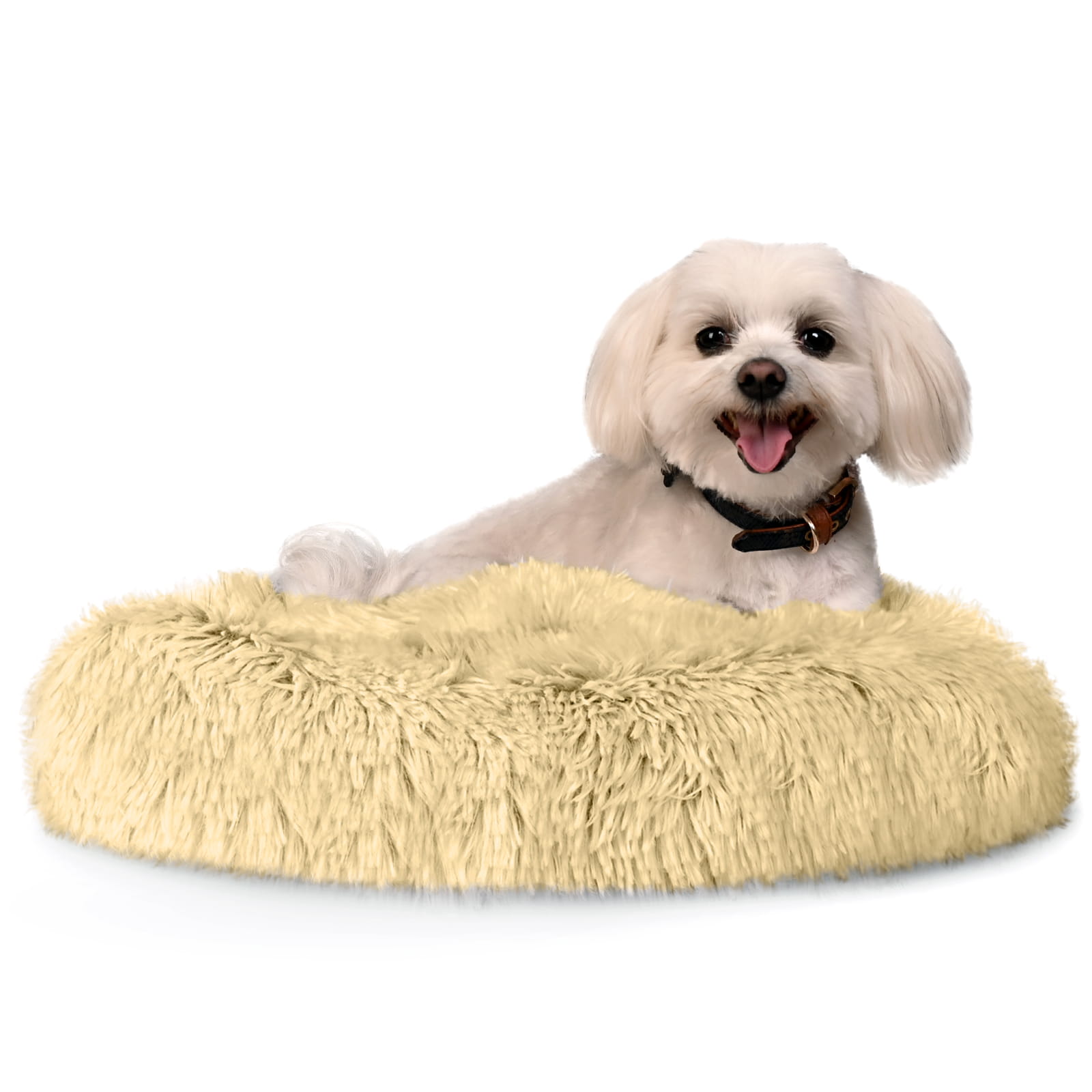Puszyste legowisko dla psa i kota 80x80x20 cm XL z miękkiej, futerkowej tkaniny SHAGGY – poduszka chmurka w kolorze żółtym