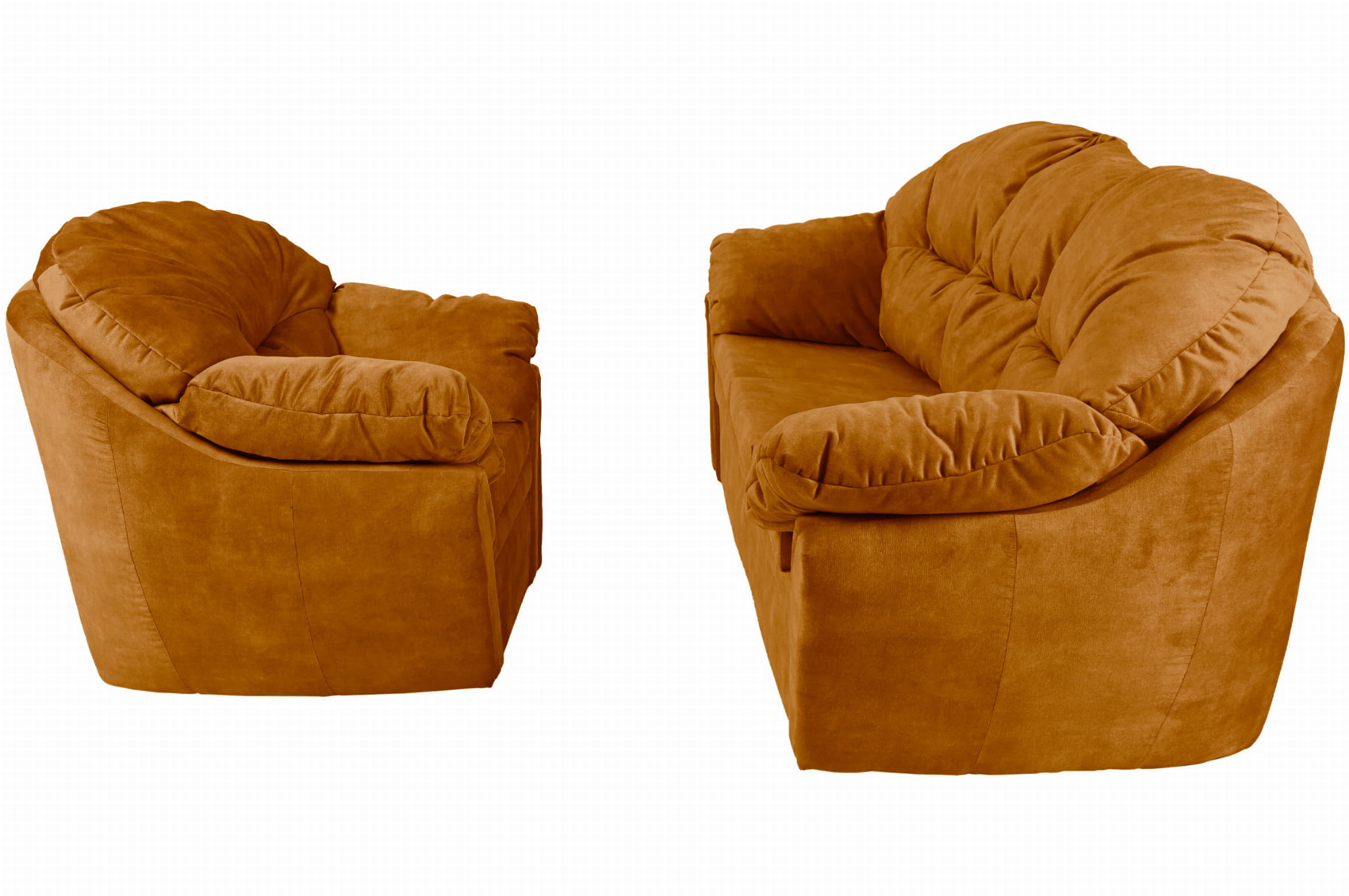 Puszysty zestaw Irma: miękka sofa oraz wygodny fotel w kolorze pomarańczowym w stylu klasycznym