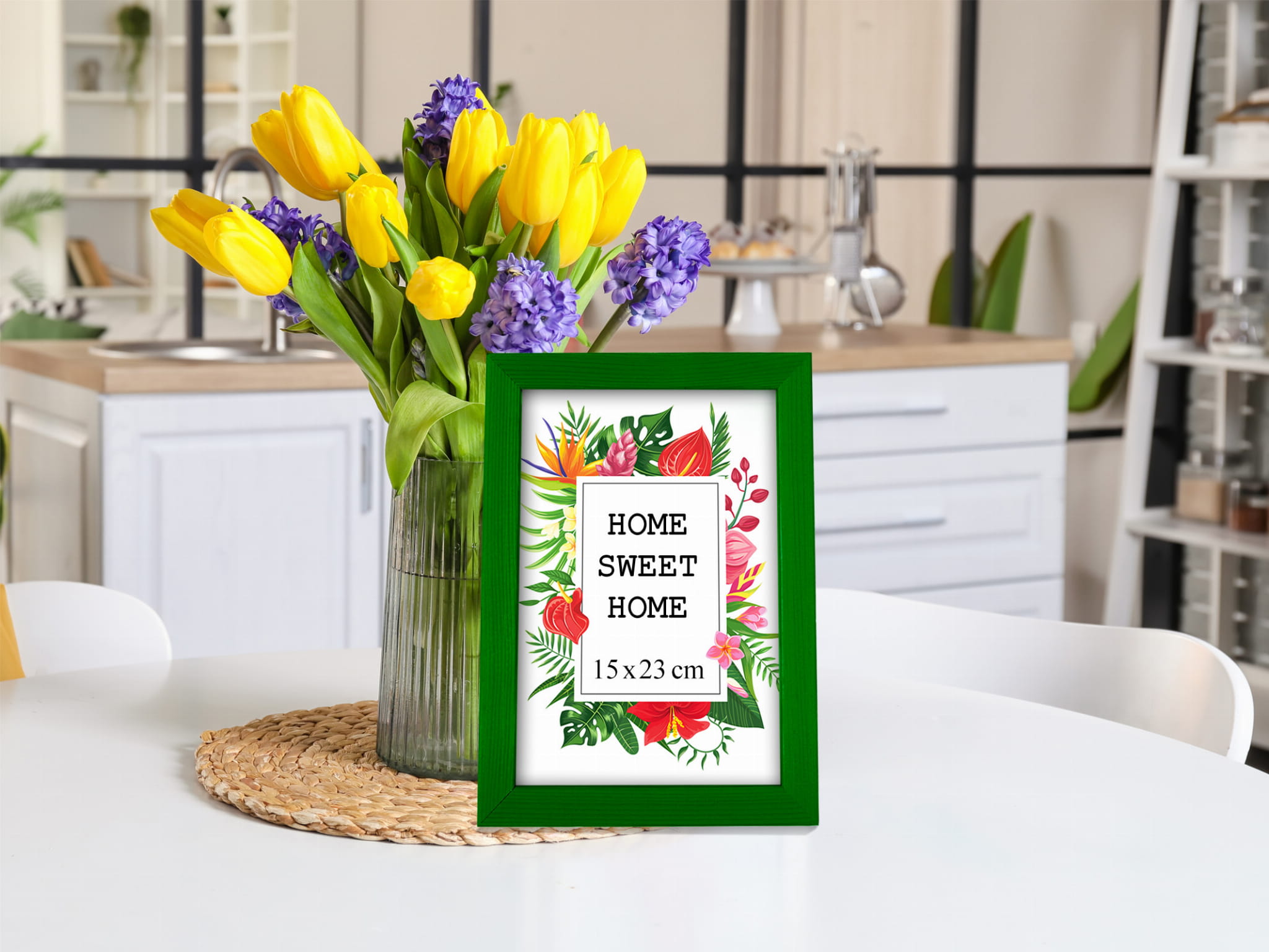 Ramka w rozmiarze 15x23 cm w kolorze zielonym.